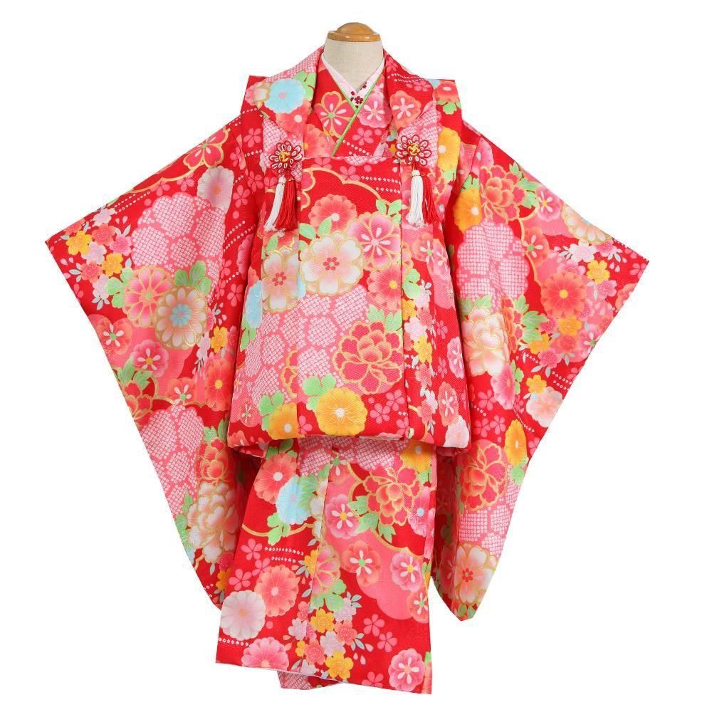 【七五三女児3歳被布レンタルセット】753G3-42 朱赤 小花 被布【往復送料無料】