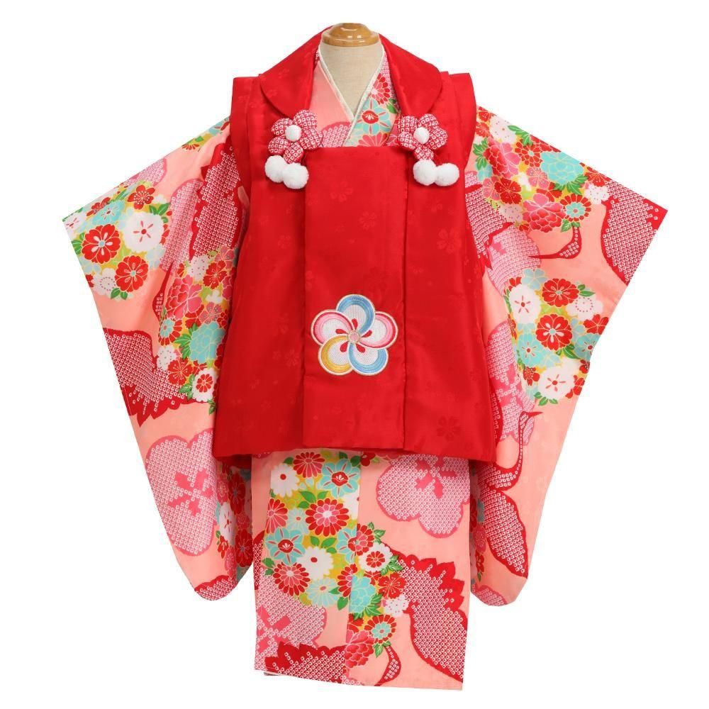 【七五三女児 3歳被布レンタルセット】753G3-45 ブランド「小町」 被布赤【往復送料無料】