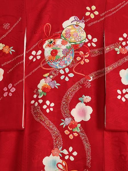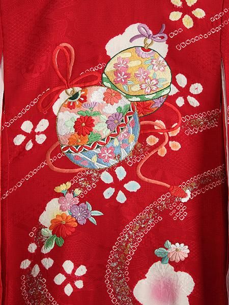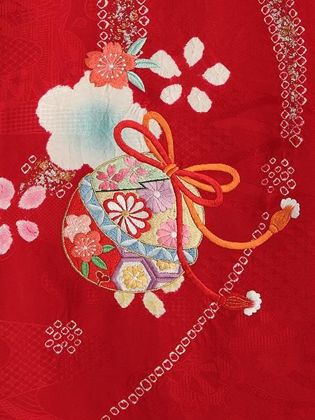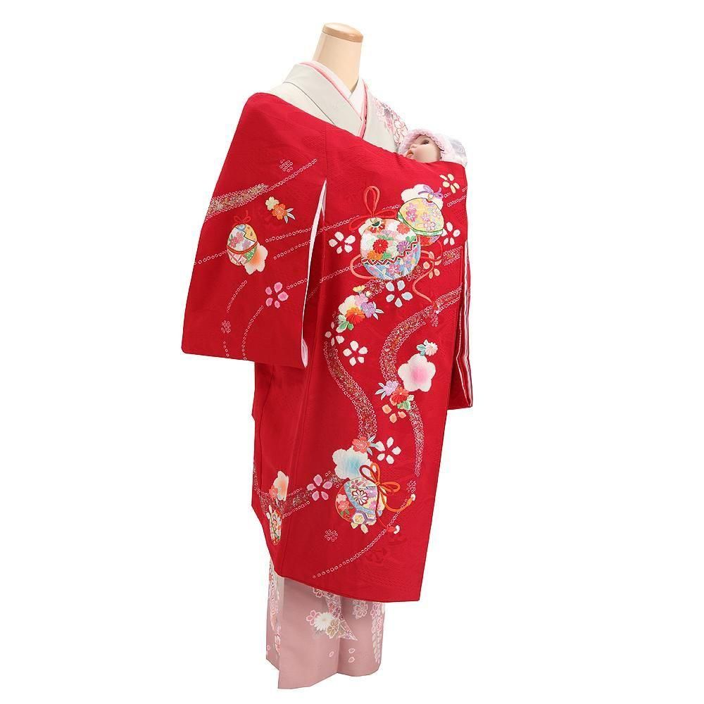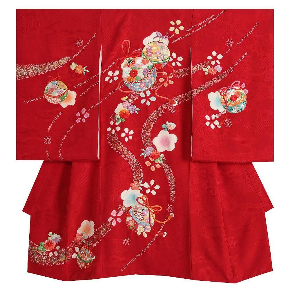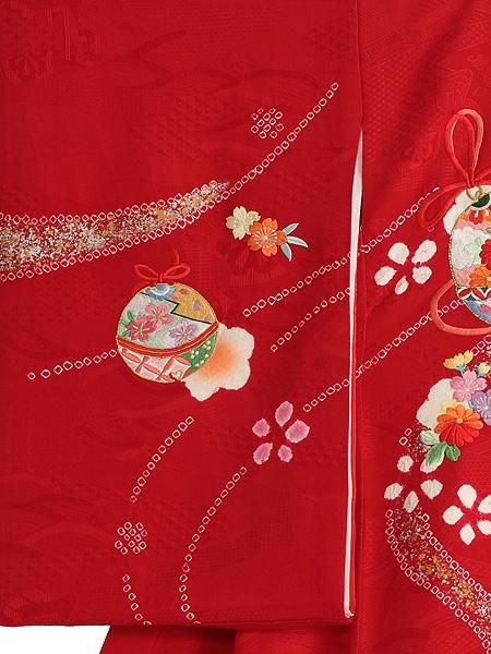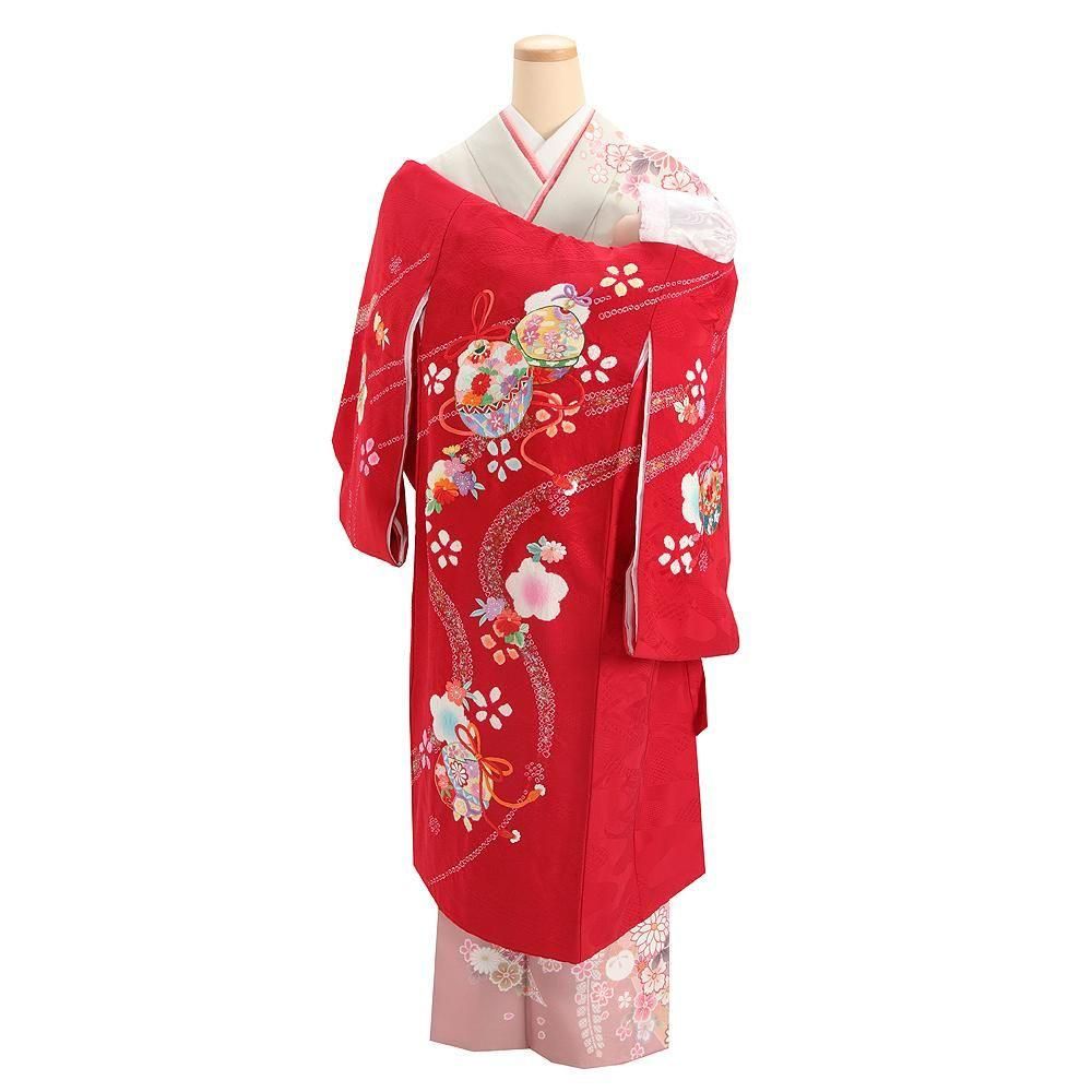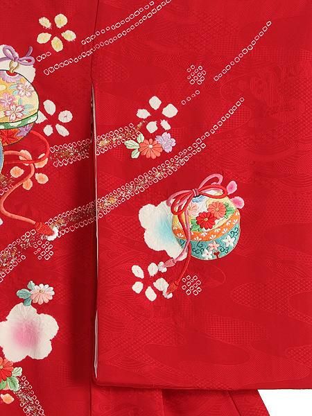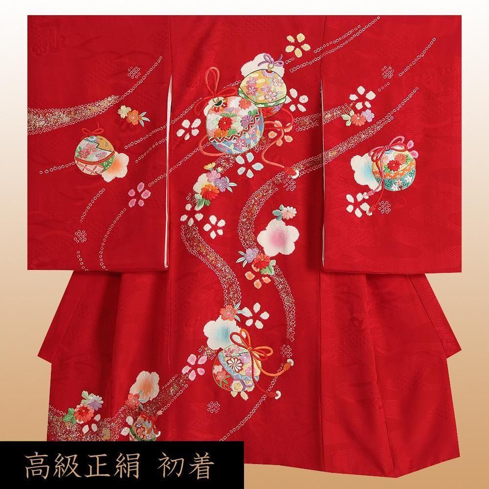 【高級初着・女児お宮参り】G220 正絹赤地 刺繍鈴 流水【往復送料無料】
