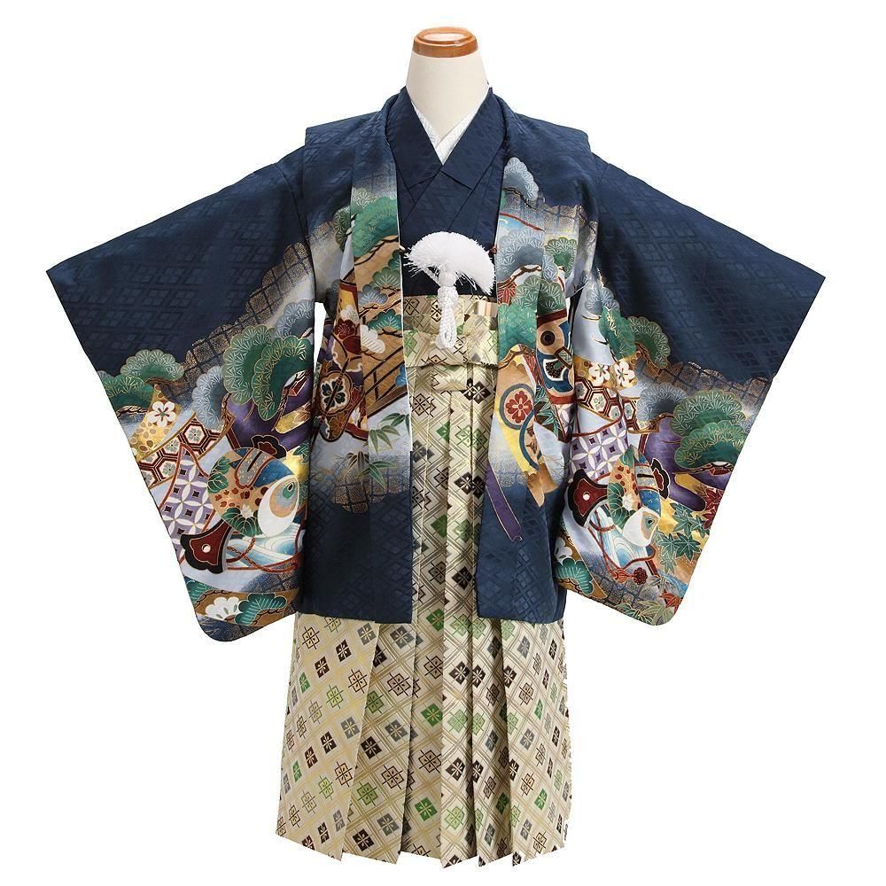 【七五三男児5歳レンタル着物】753B4-36a 濃紺地 鷹 武田菱【往復送料無料】