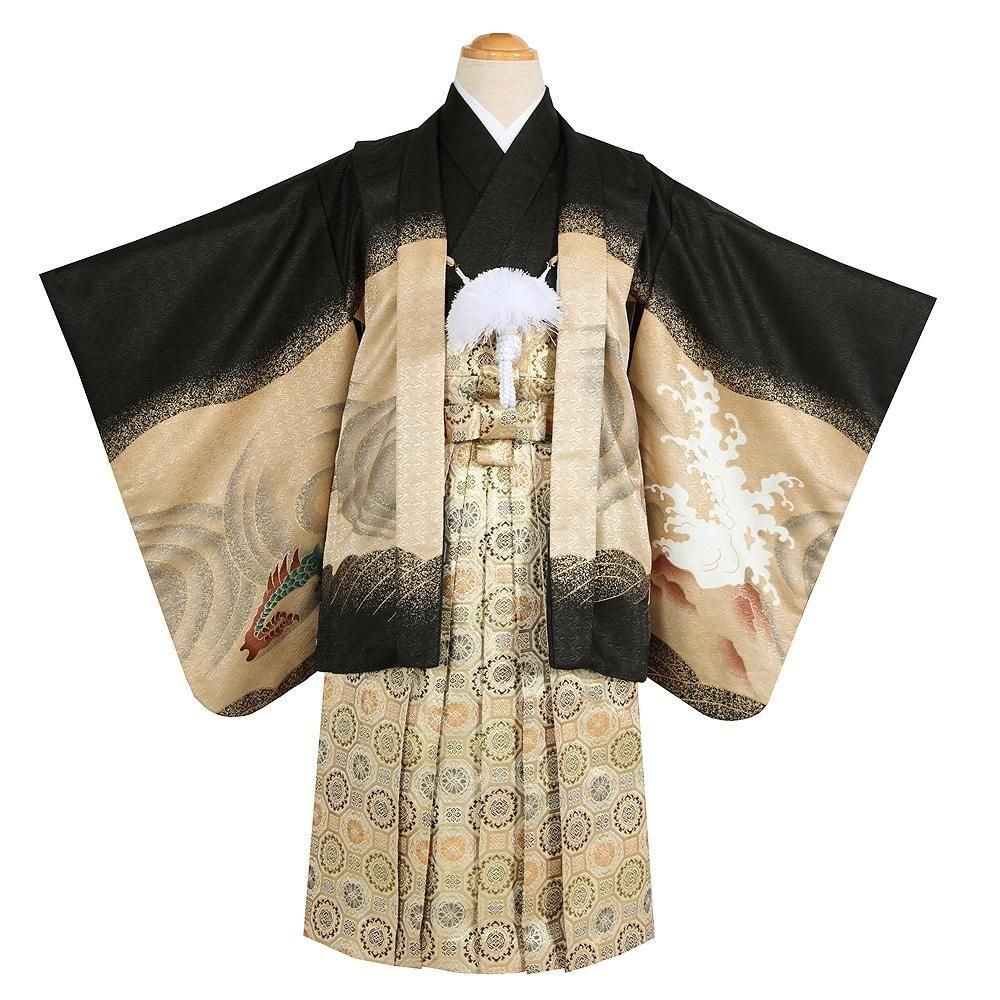 【七五三男児3歳レンタル着物】753B3-18 黒金ぼかし龍 丸紋【往復送料無料】