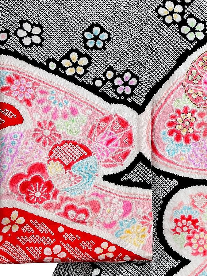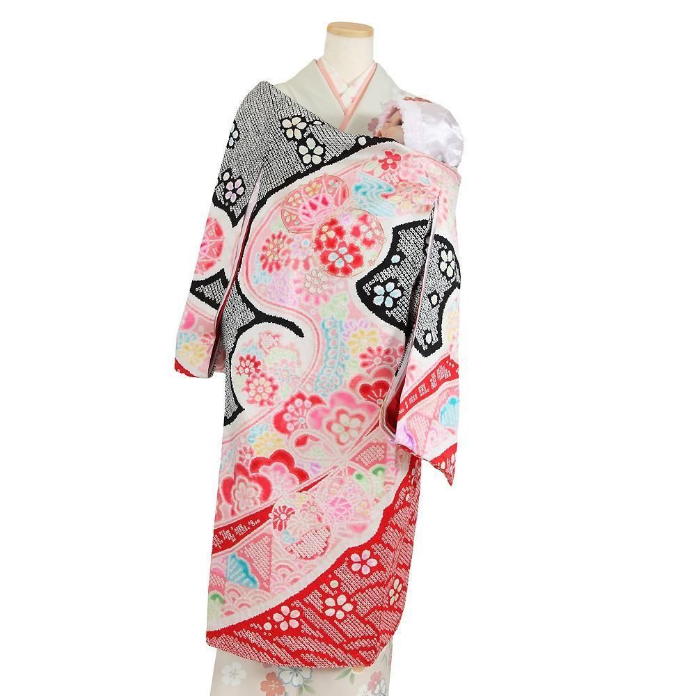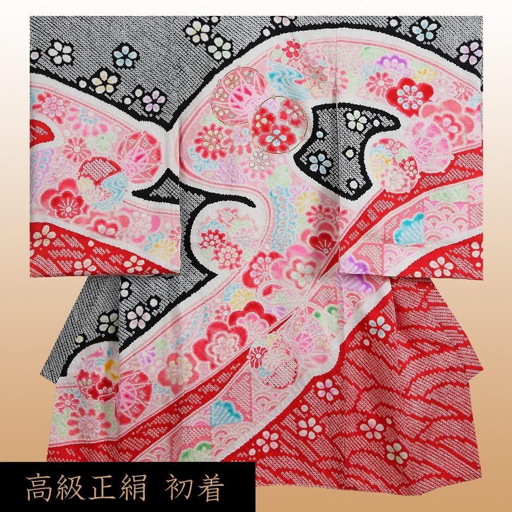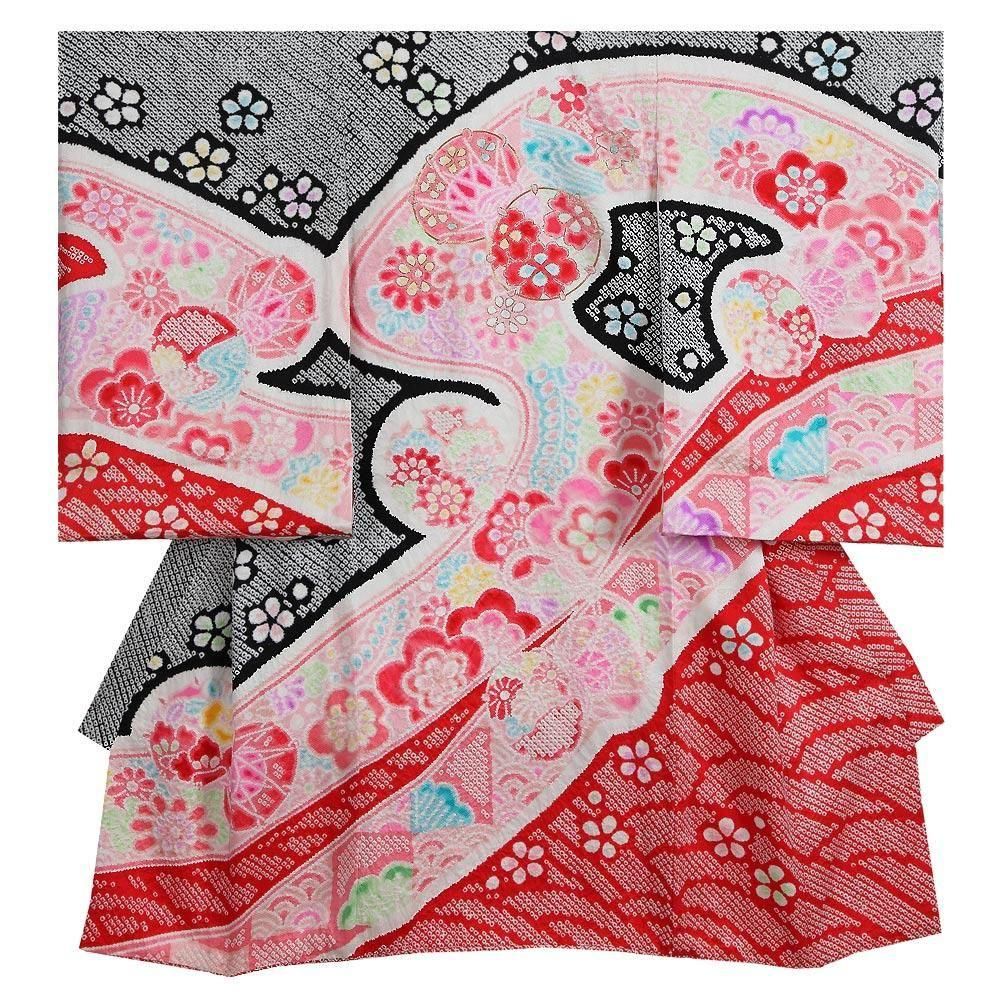 【高級初着・女児お宮参り】G226 正絹黒赤地 総絞り染め 鼓 【往復送料無料】