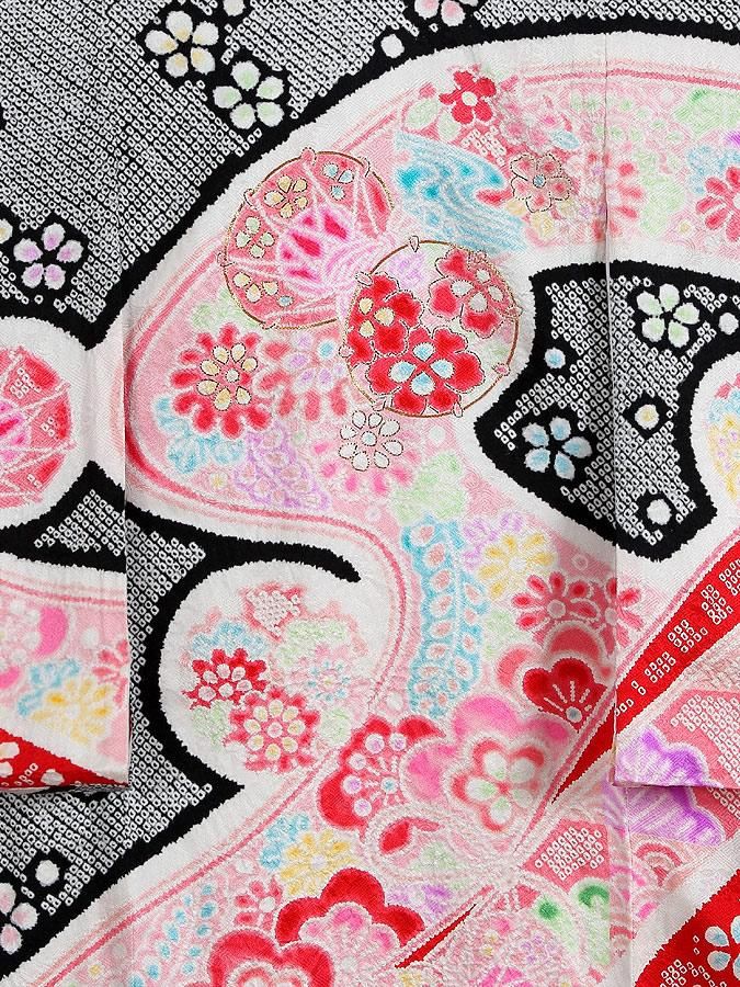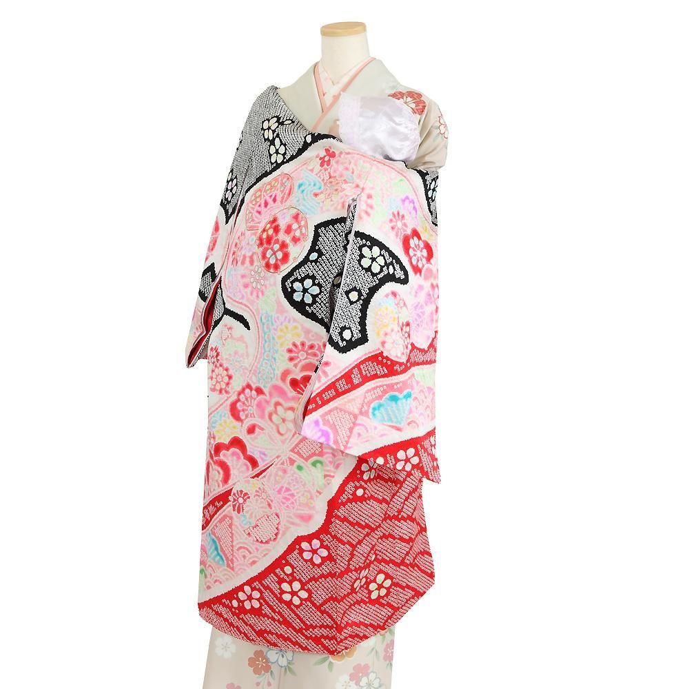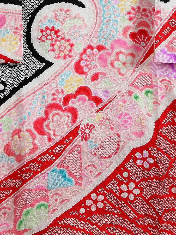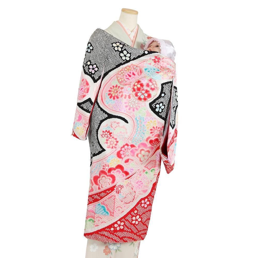 【高級初着・女児お宮参り】G226 正絹黒赤地 総絞り染め 鼓 【往復送料無料】