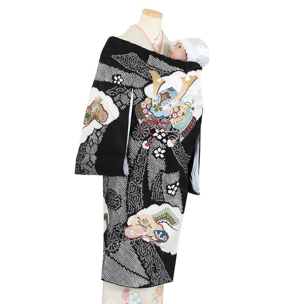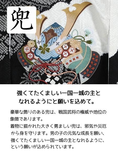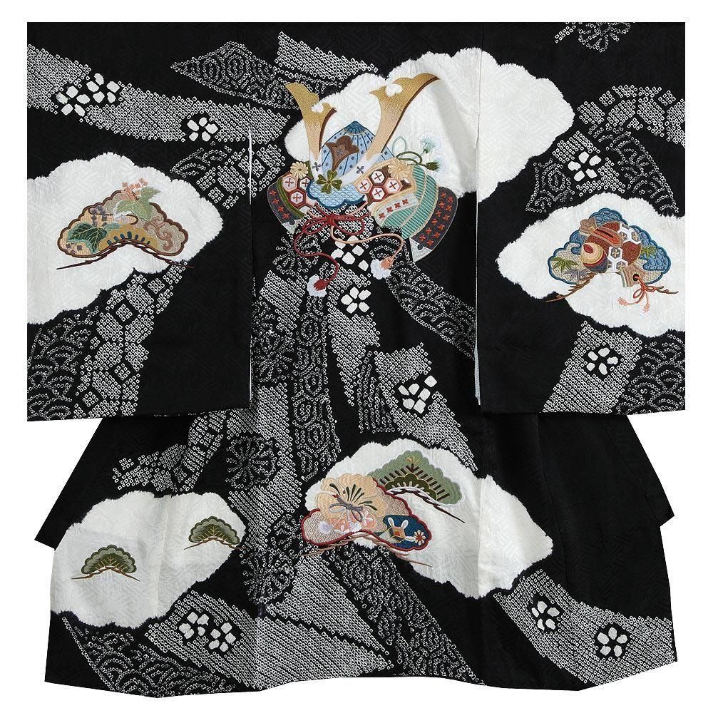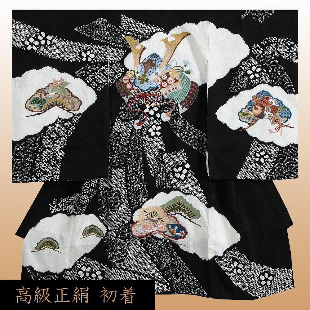 【高級初着・男児お宮参り】B123 正絹黒地 本絞り染 兜 高級刺繍【往復送料無料】