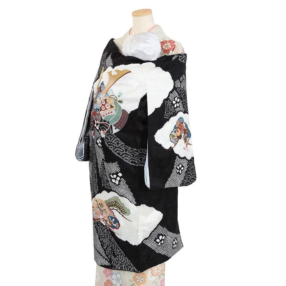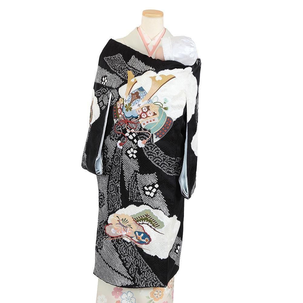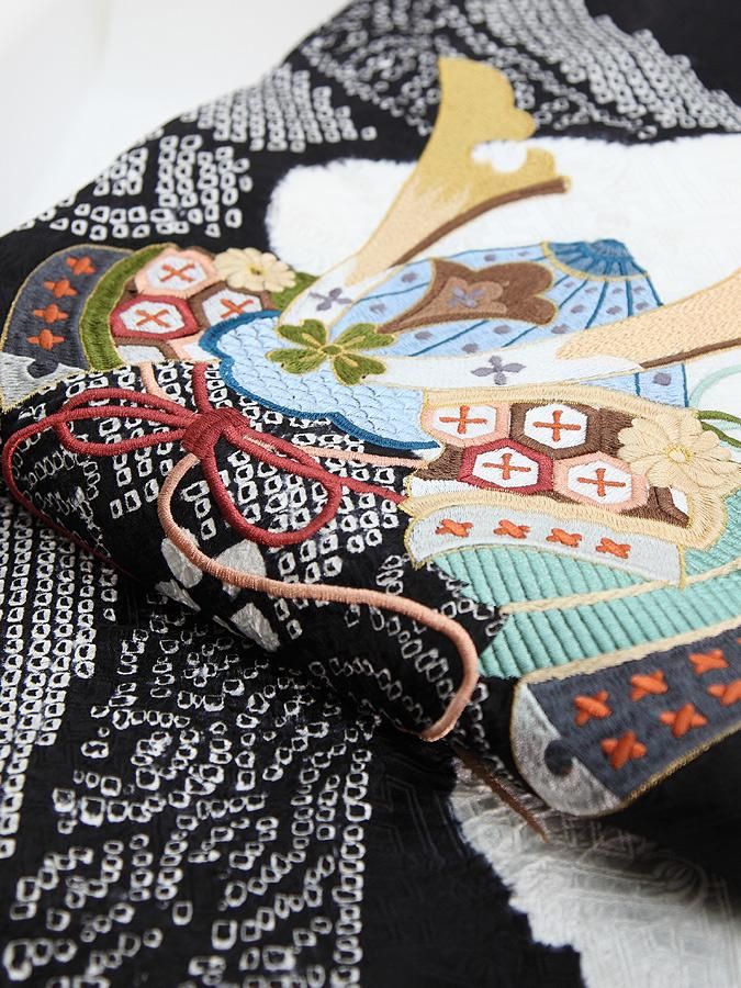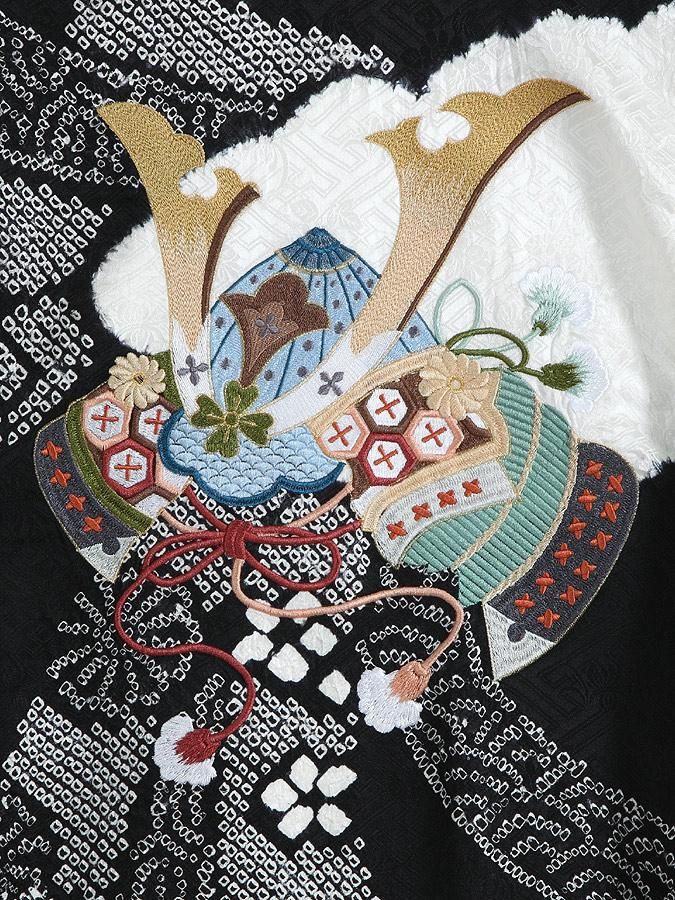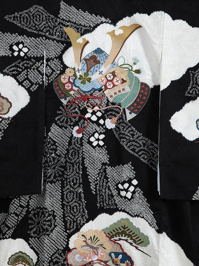 【高級初着・男児お宮参り】B123 正絹黒地 本絞り染 兜 高級刺繍【往復送料無料】
