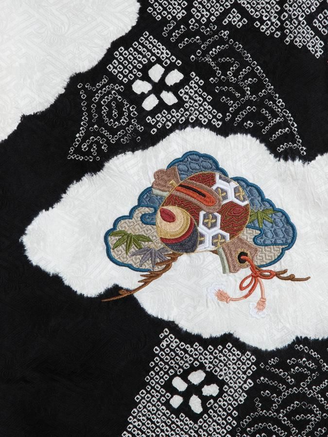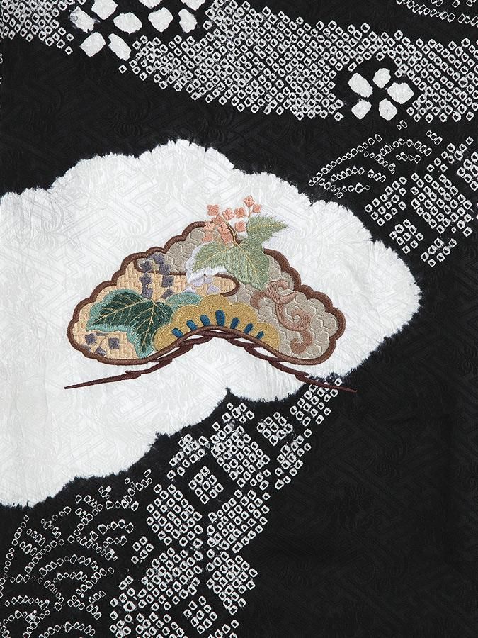 B123 正絹黒地 本絞り染 兜 高級刺繍