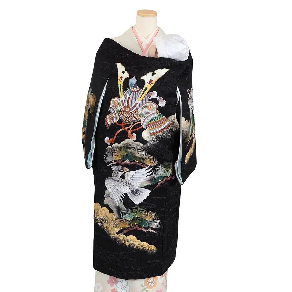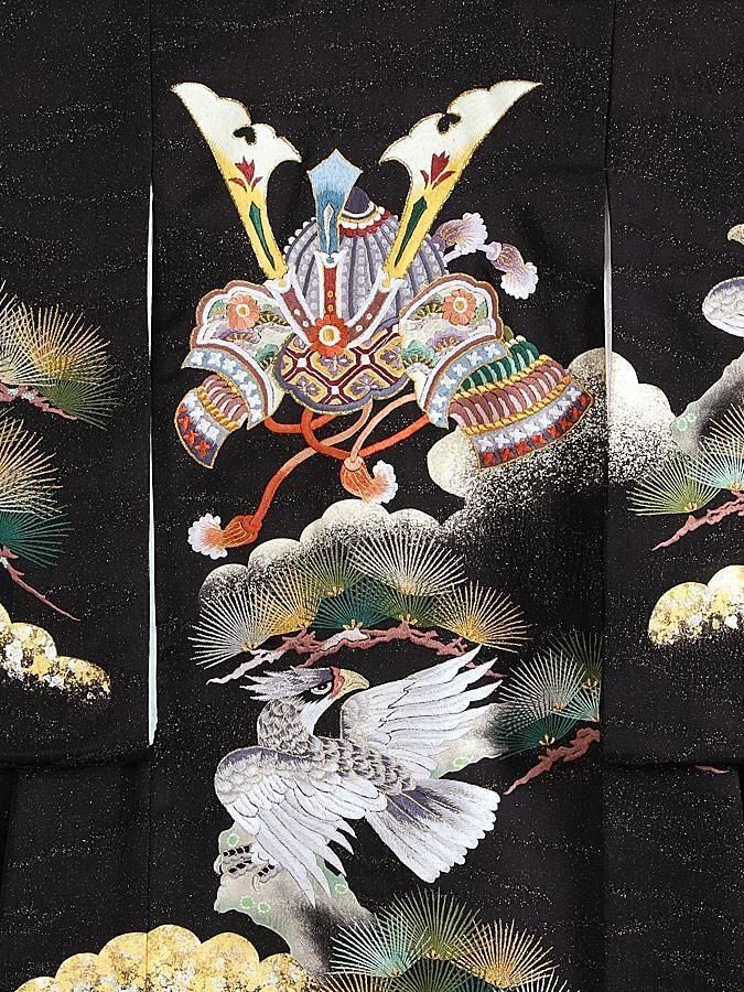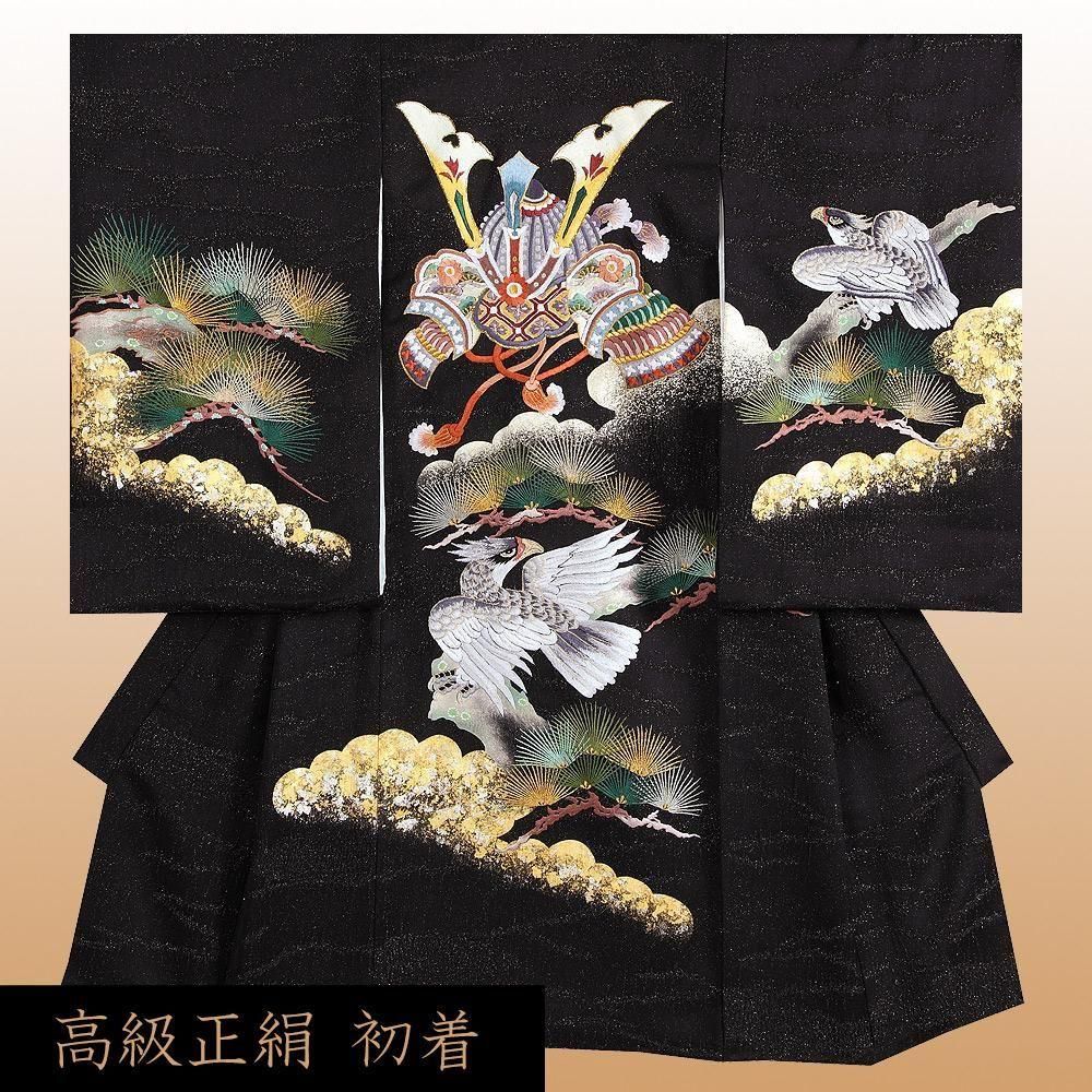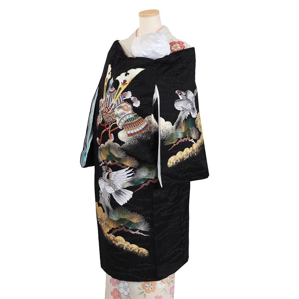 【高級初着・男児お宮参り】B128 正絹黒地 刺繍 兜鷹【往復送料無料】