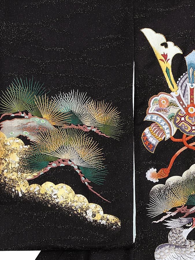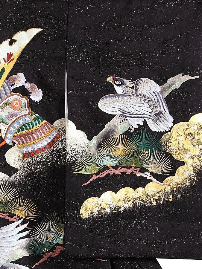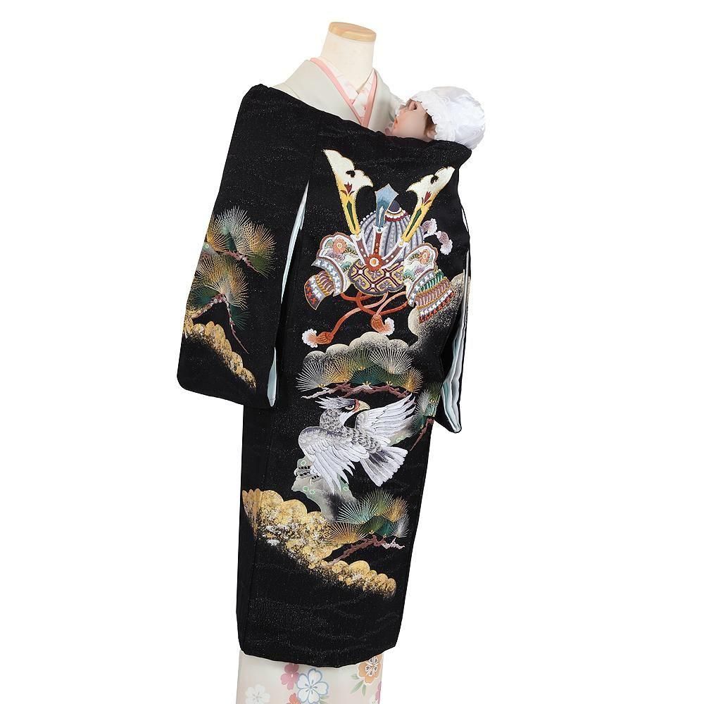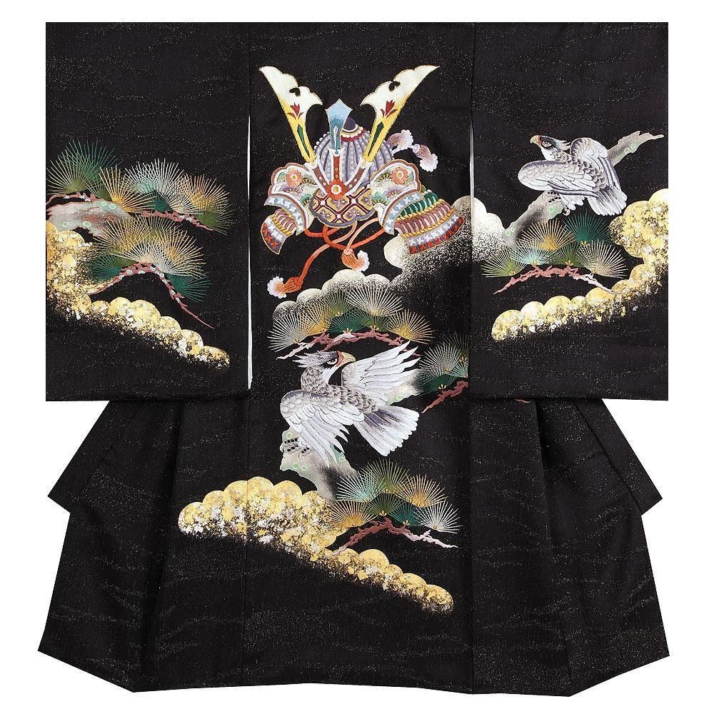 【高級初着・男児お宮参り】B128 正絹黒地 刺繍 兜鷹【往復送料無料】