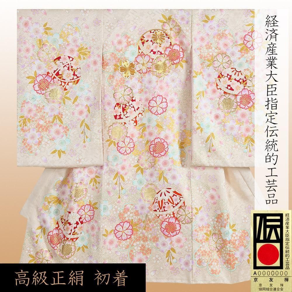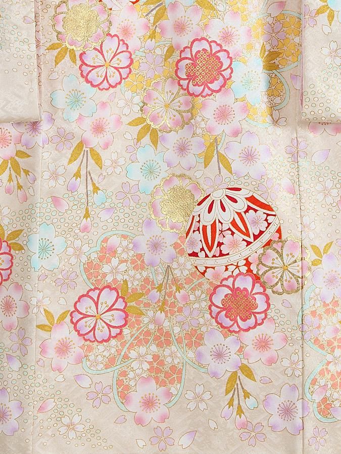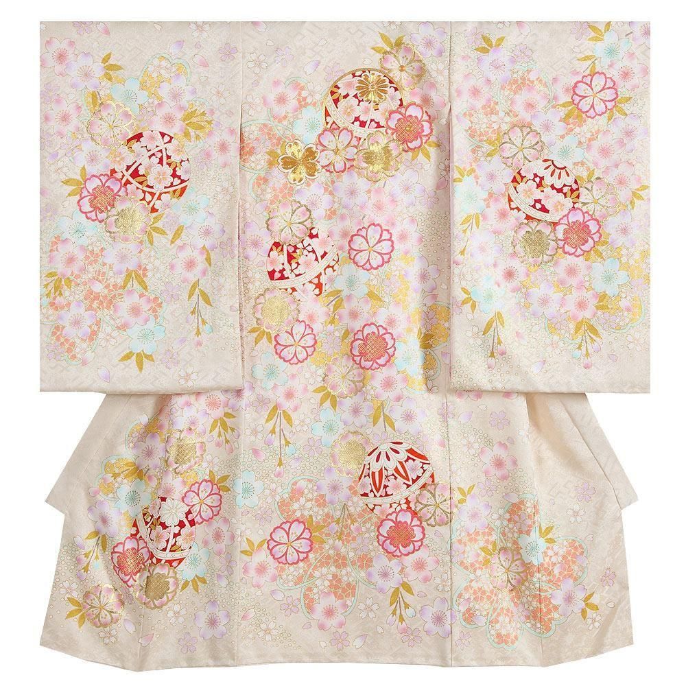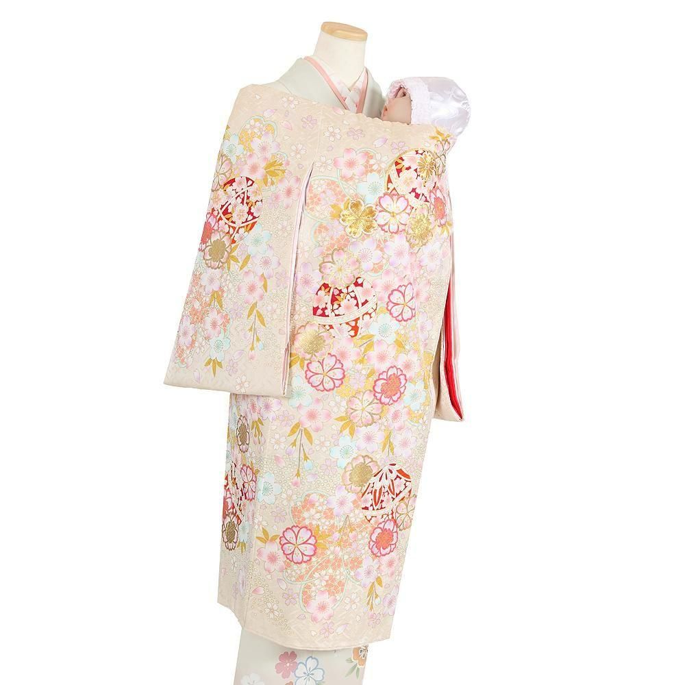 【高級産着・女児お宮参り】G235 正絹クリーム地 金駒刺繍 鞠小花【往復送料無料】