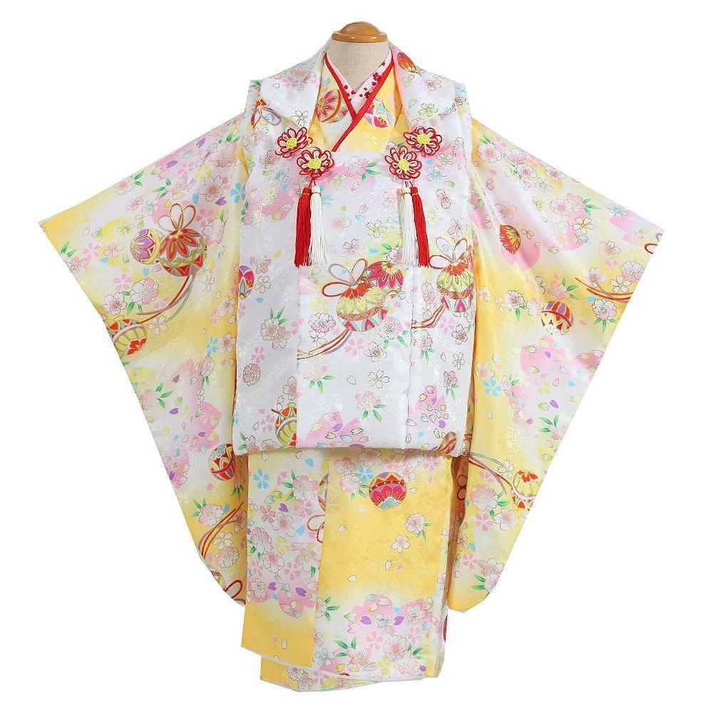 【七五三 3歳被布レンタルセット】753G3-66 黄色×白 鞠 小花【往復送料無料】