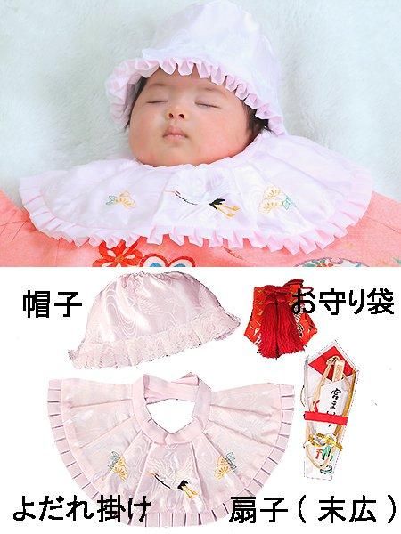 [帽子、よだれかけ、お守り、末広(扇子)]