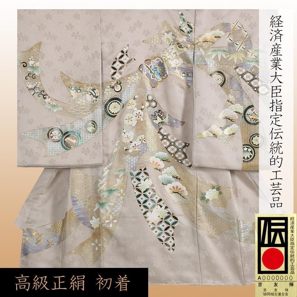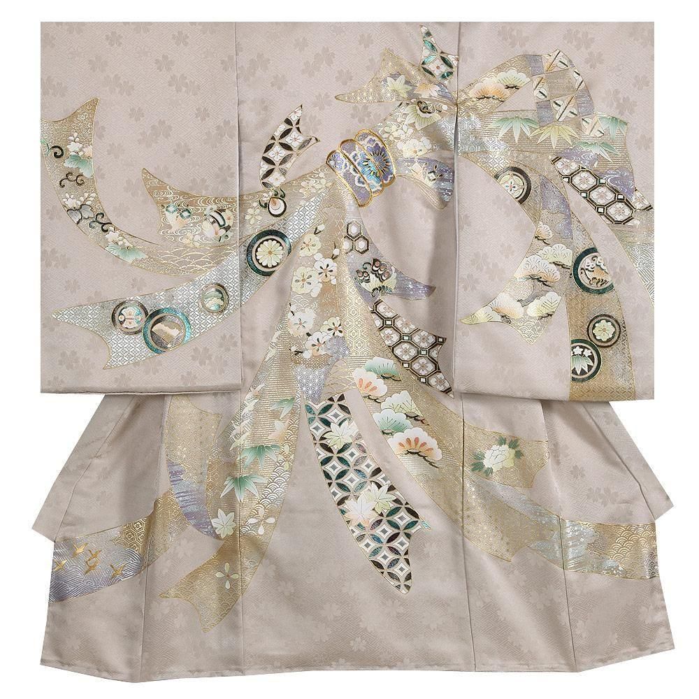 【高級初着・女児お宮参り】G0134 正絹くすみ茶ベージュ地 京友禅 束ね熨斗【往復送料無料】
