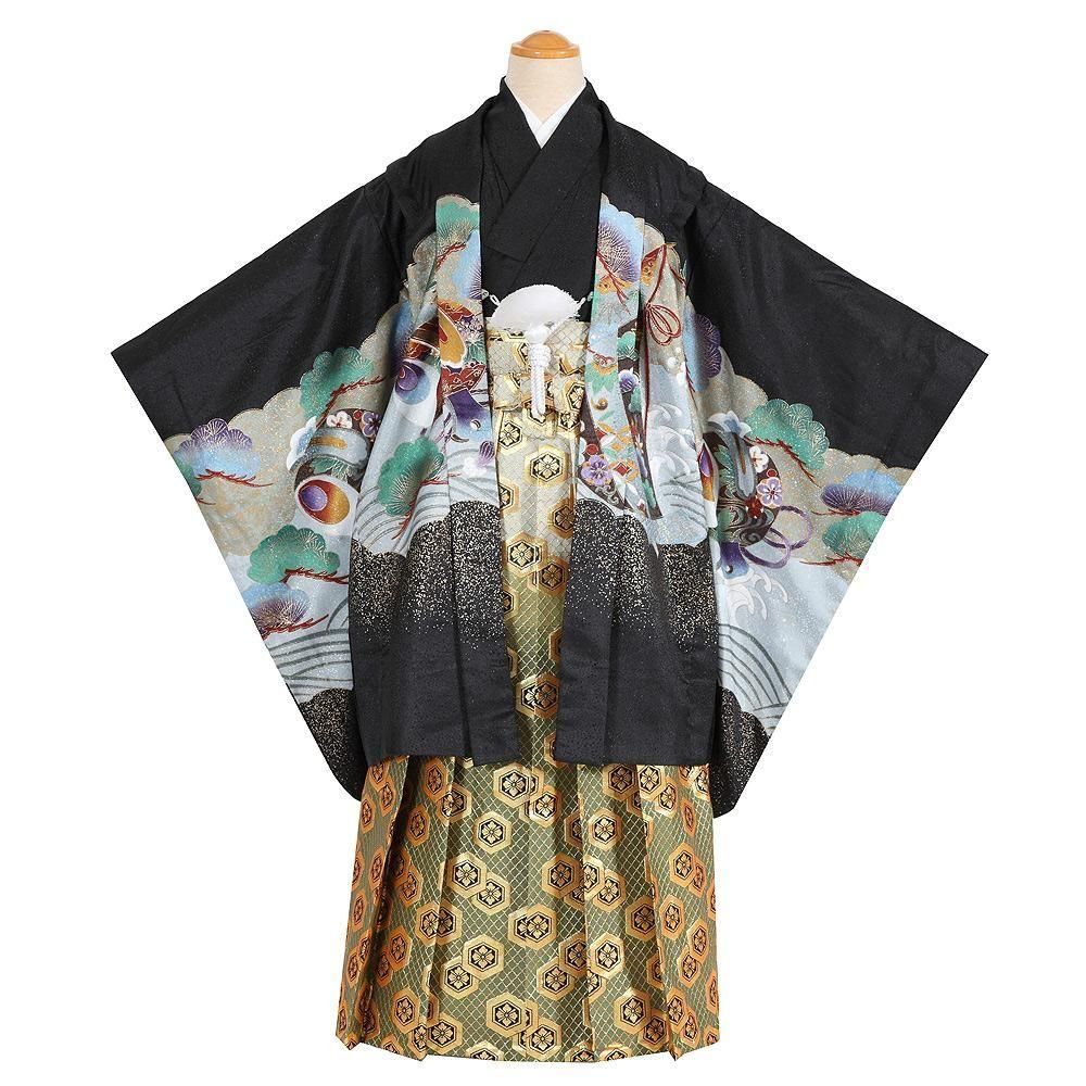 【七五三男児5歳レンタル着物】753B4-51 Lサイズ 黒地 鷹 ぼかし亀甲【往復送料無料】