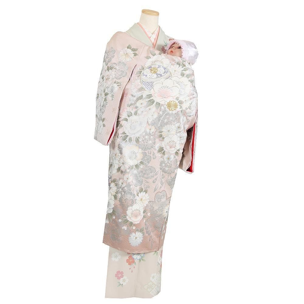 【高級初着・女児お宮参り】G241 正絹くすみピンクベージュ地 京友禅 金駒刺繍 鞠【往復送料無料】