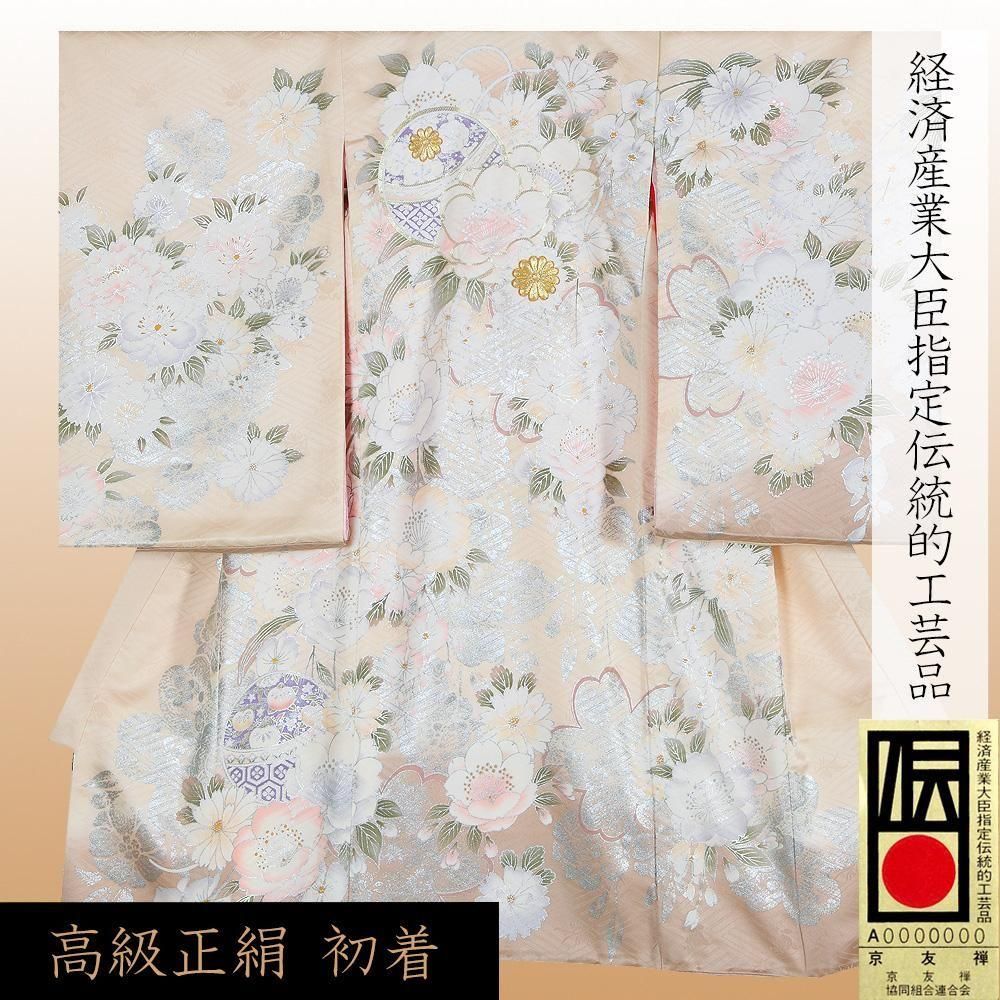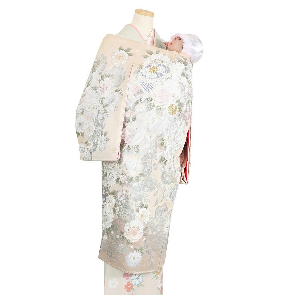 【高級初着・女児お宮参り】G242 正絹くすみベージュ地 京友禅 金駒刺繍 鞠【往復送料無料】