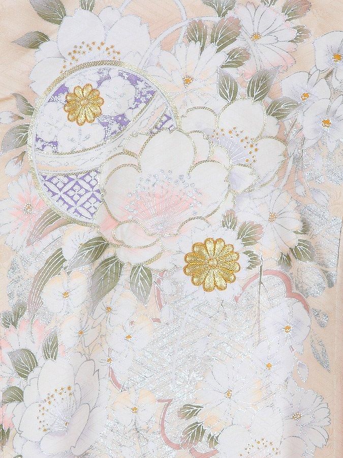 G242 正絹ベージュ地 京友禅 金駒刺繍 鞠