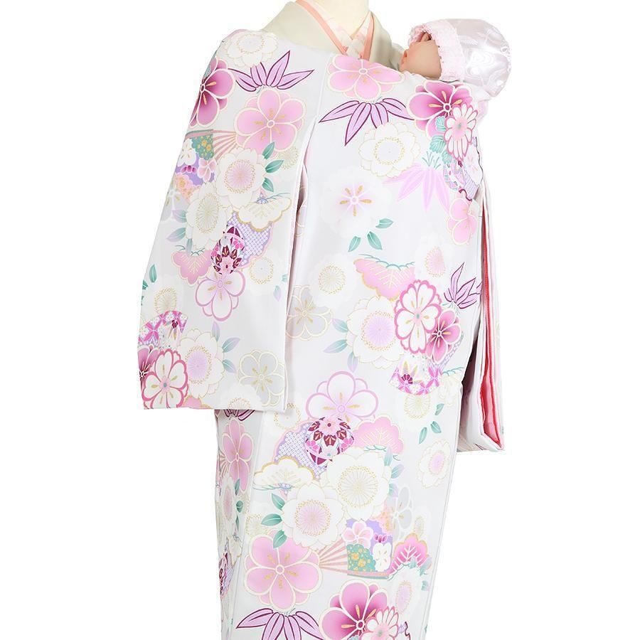 【女児お宮参りレンタル初着(産着)】G141 薄グレー地 松竹梅 扇【往復送料無料】