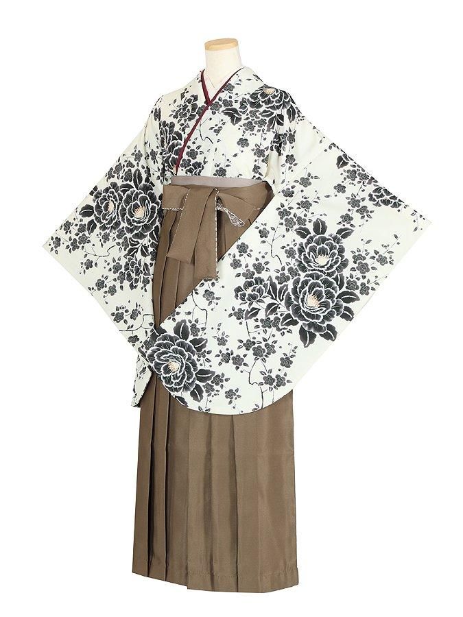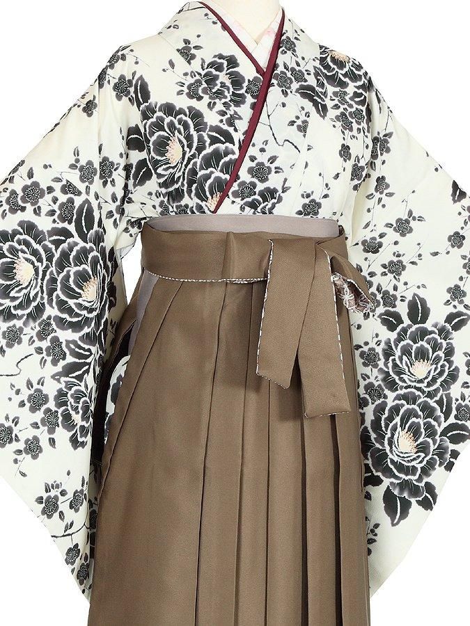 【着物・袴セット】 SG-78・HM-130 クリーム黒茶花・モカ無地【卒業式カタログ】