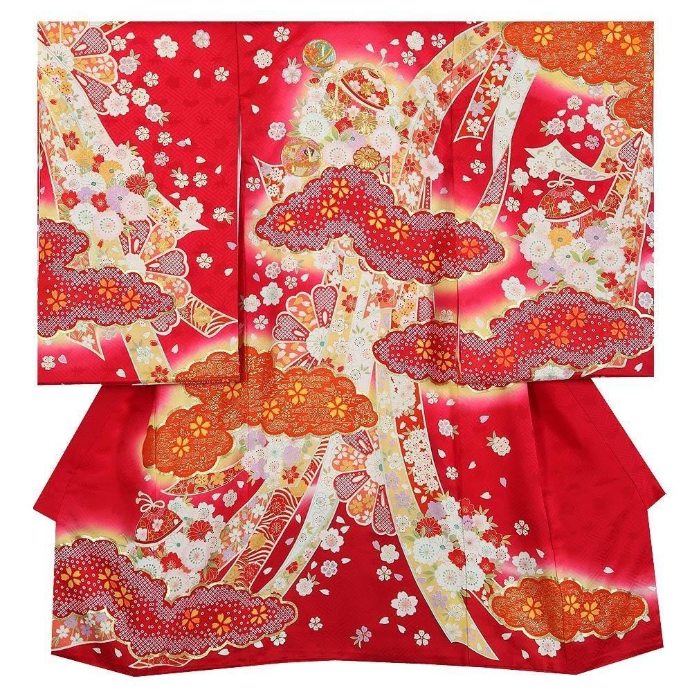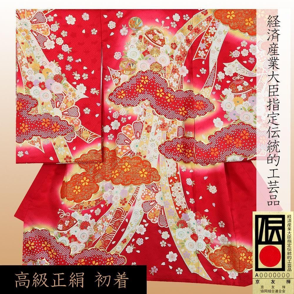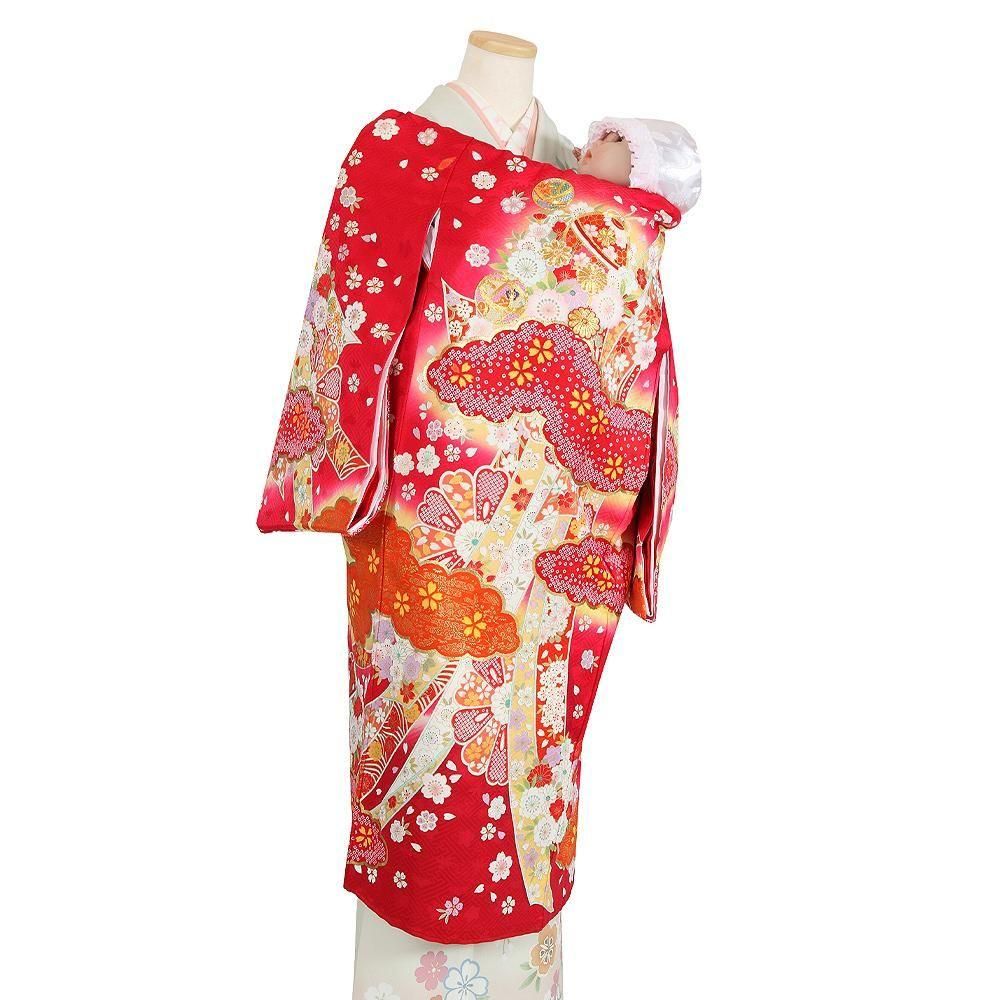 【高級初着・女児お宮参り】G243 正絹赤地 金駒刺繍 鈴 雲取り【往復送料無料】