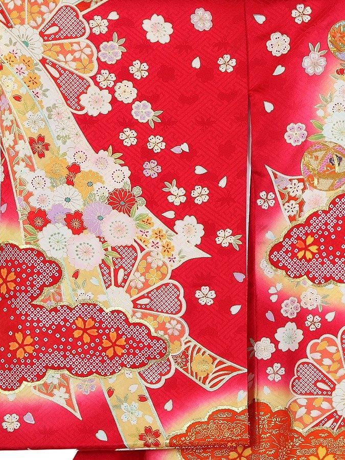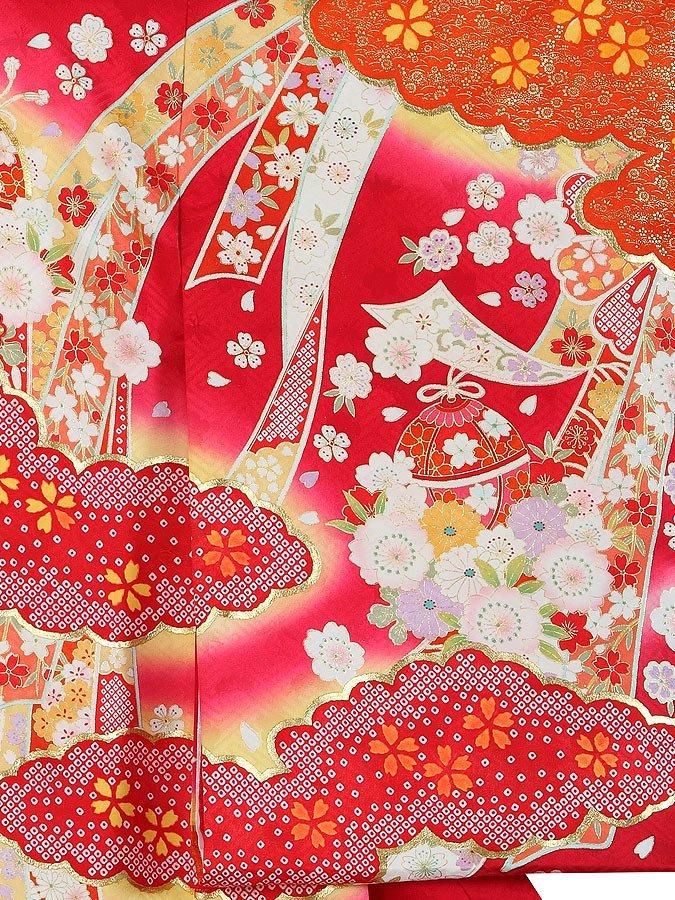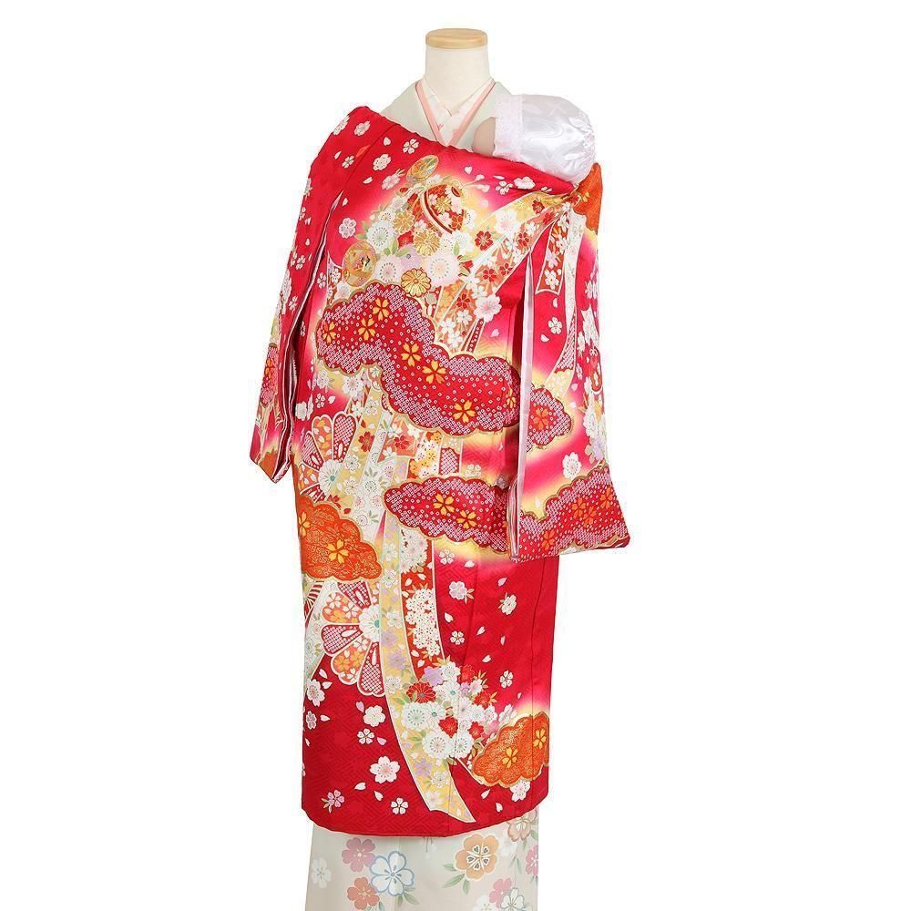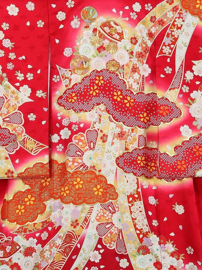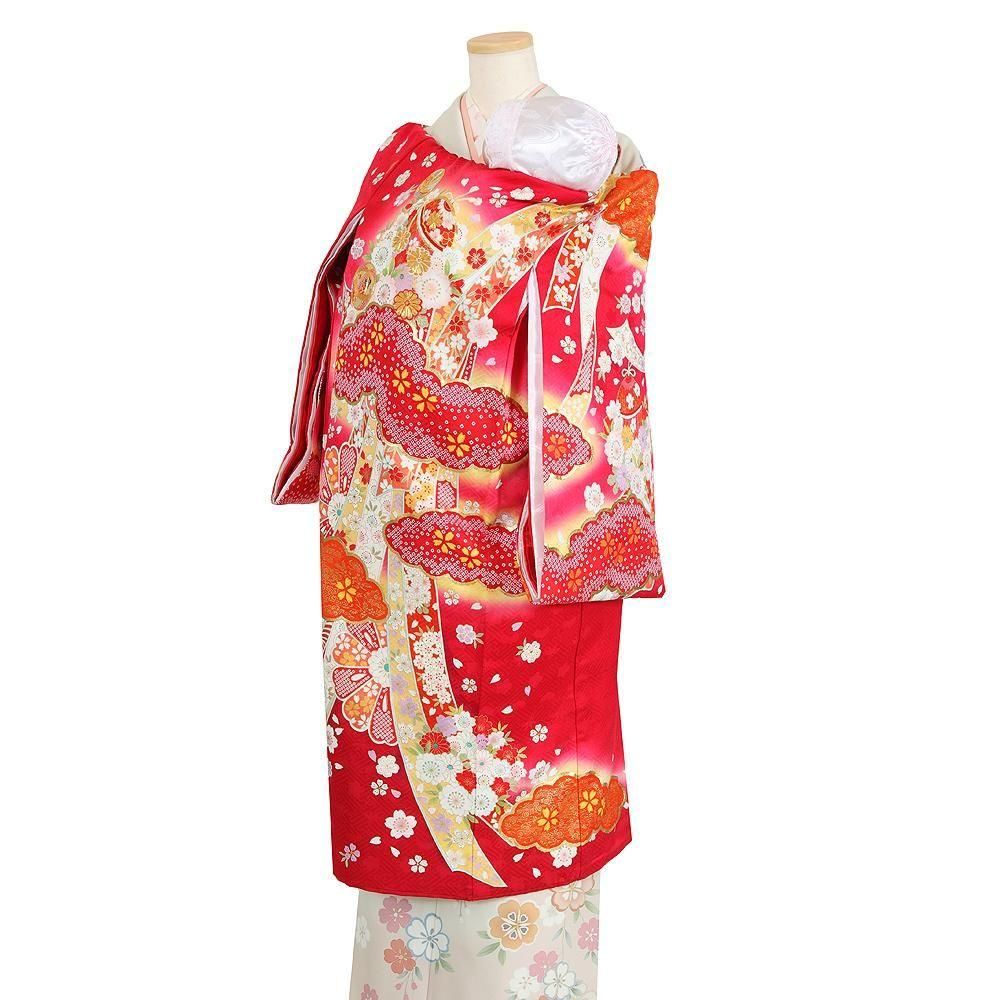 【高級初着・女児お宮参り】G243 正絹赤地 金駒刺繍 鈴 雲取り【往復送料無料】