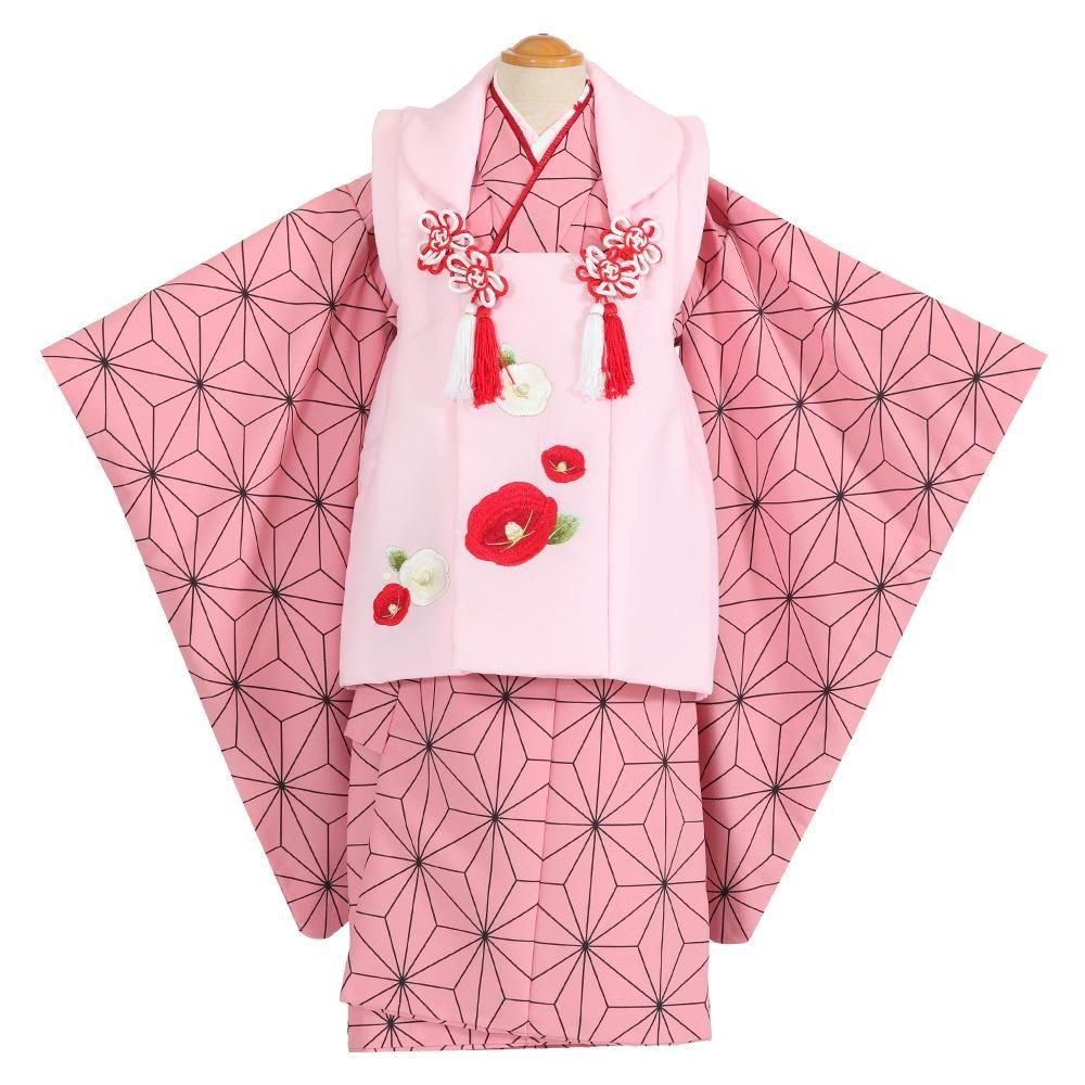 【七五三女児3歳被布レンタルセット】753G3-67 ピンク地 麻の葉【往復送料無料】