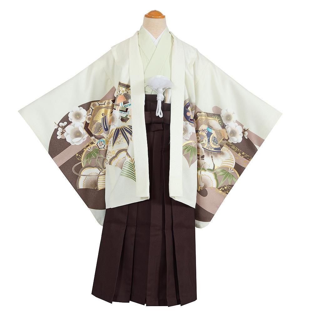 【七五三男児5歳レンタル着物】753B4-56b オフホワイト地 鷹 こげ茶【往復送料無料】