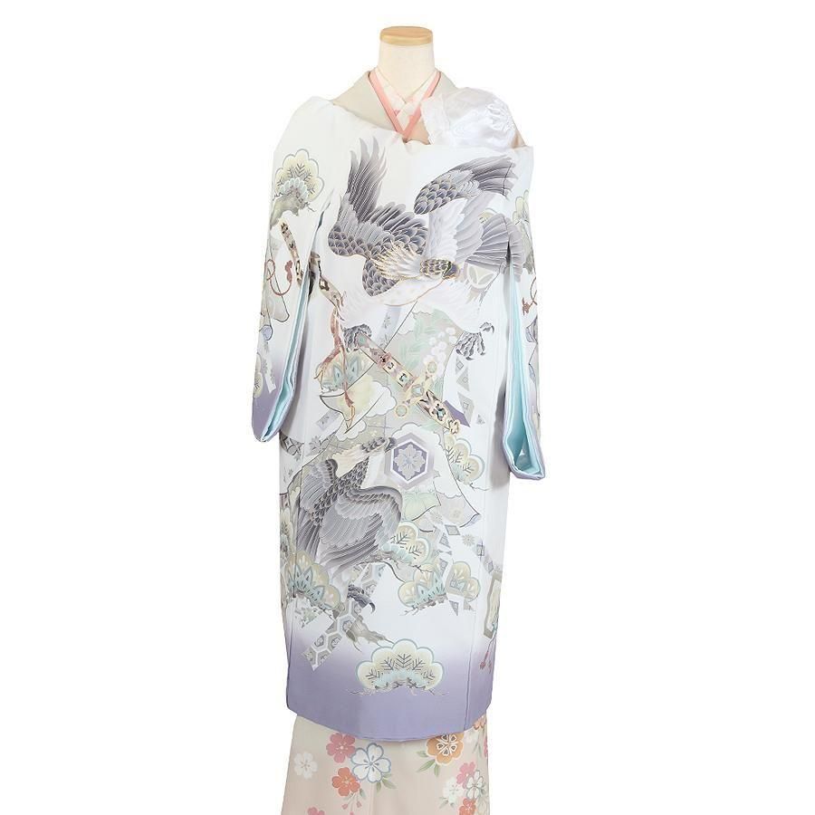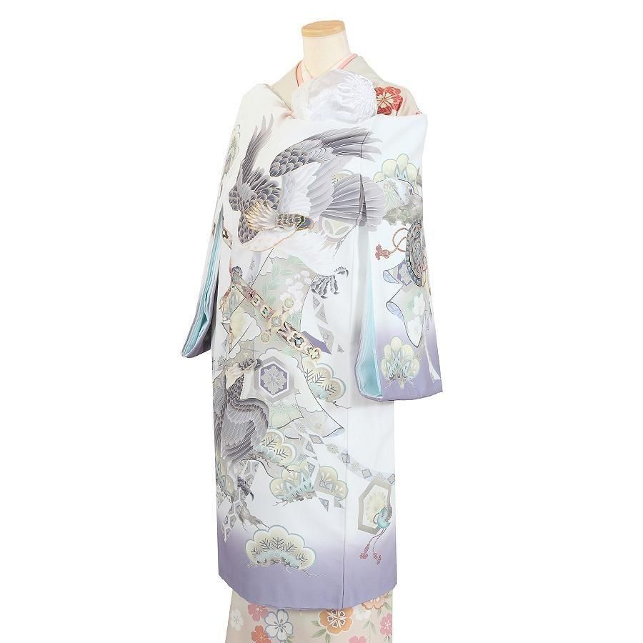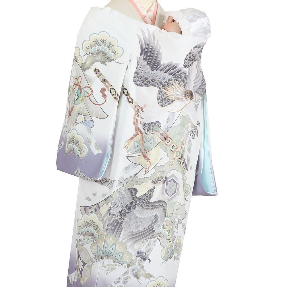 【男児お宮参りレンタル初着(産着)】B262 白地 紫ぼかし 鷹 神器【往復送料無料】