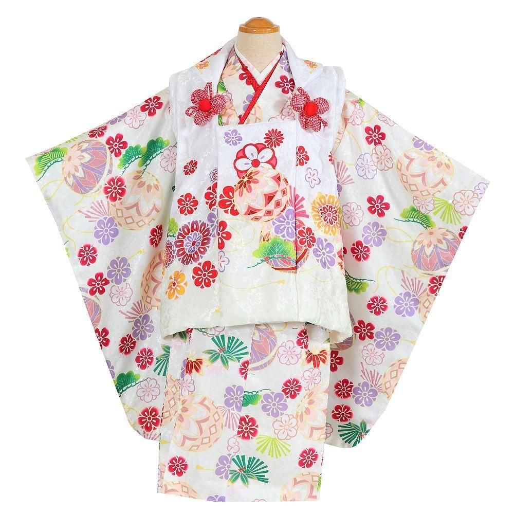 【七五三 3歳被布レンタルセット】753G3-69 クリーム色×白 鞠 松竹梅【往復送料無料】