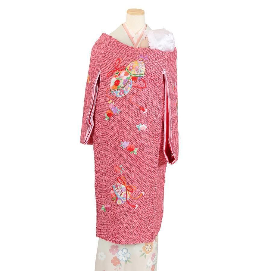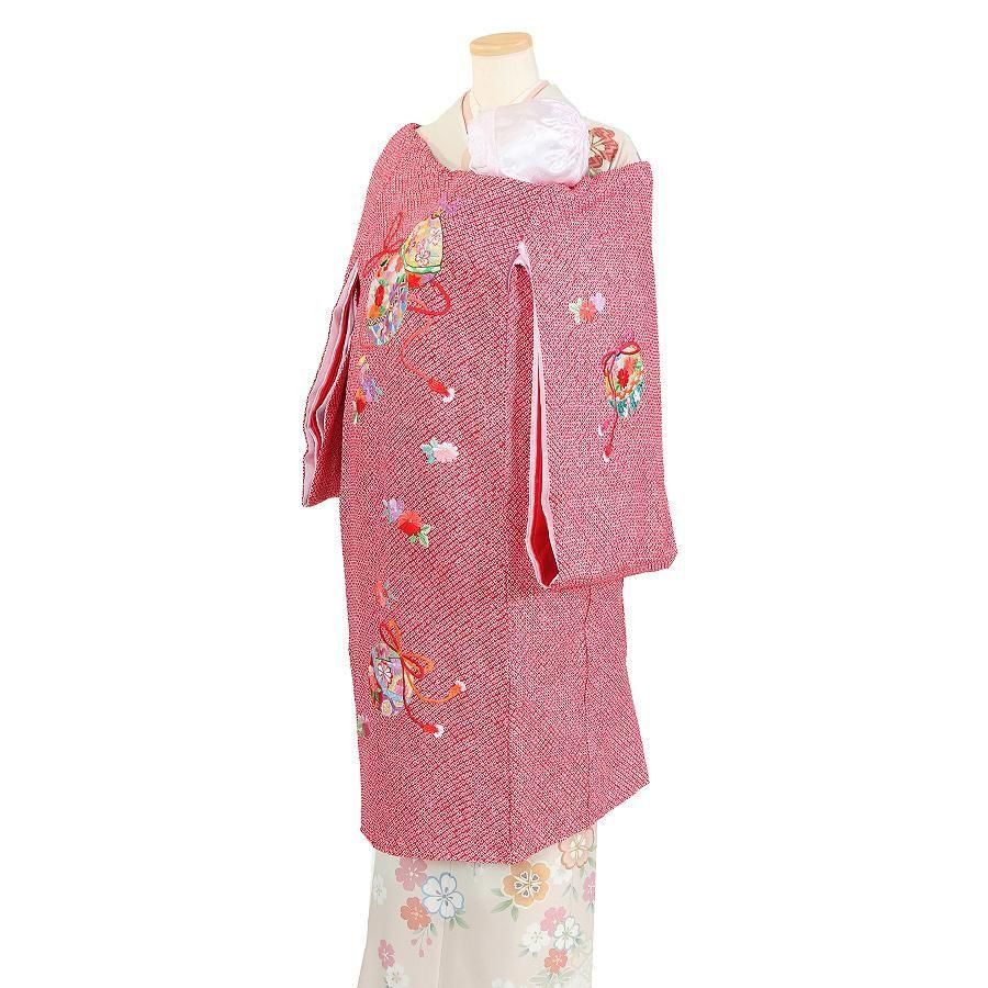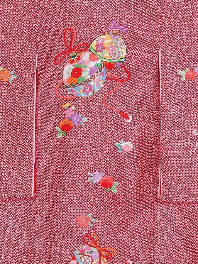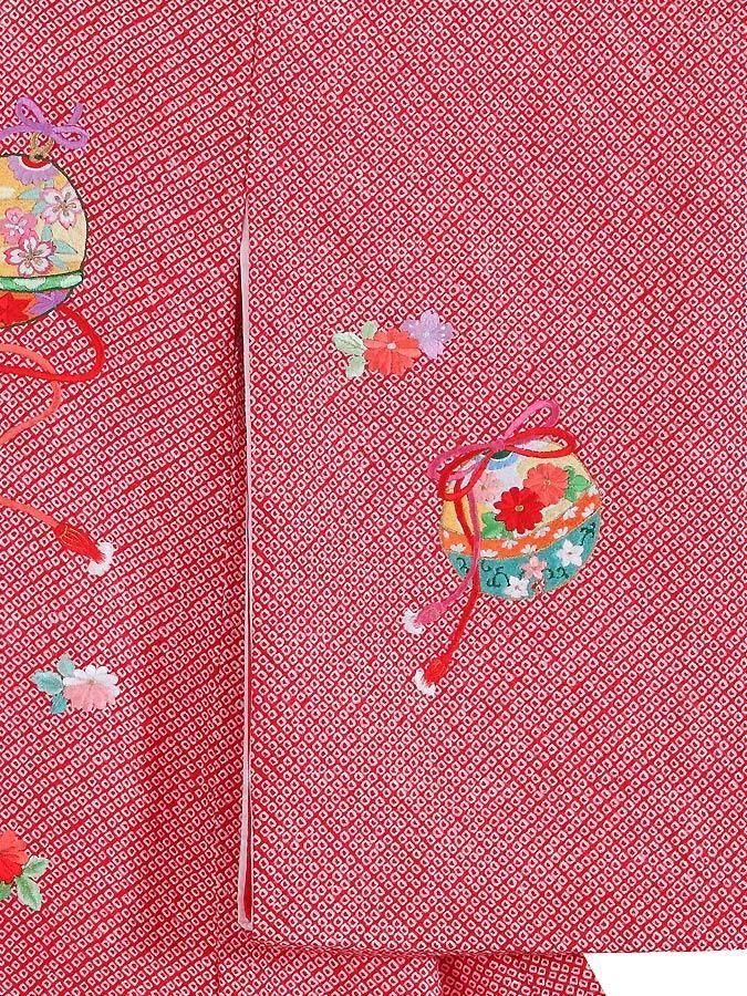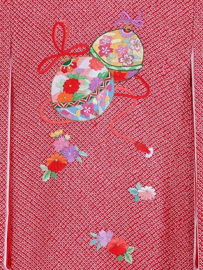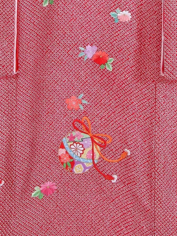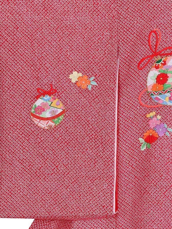 【高級初着・女児お宮参り】G245 正絹赤地 京都かの子絞り染め 刺繍鈴【往復送料無料】