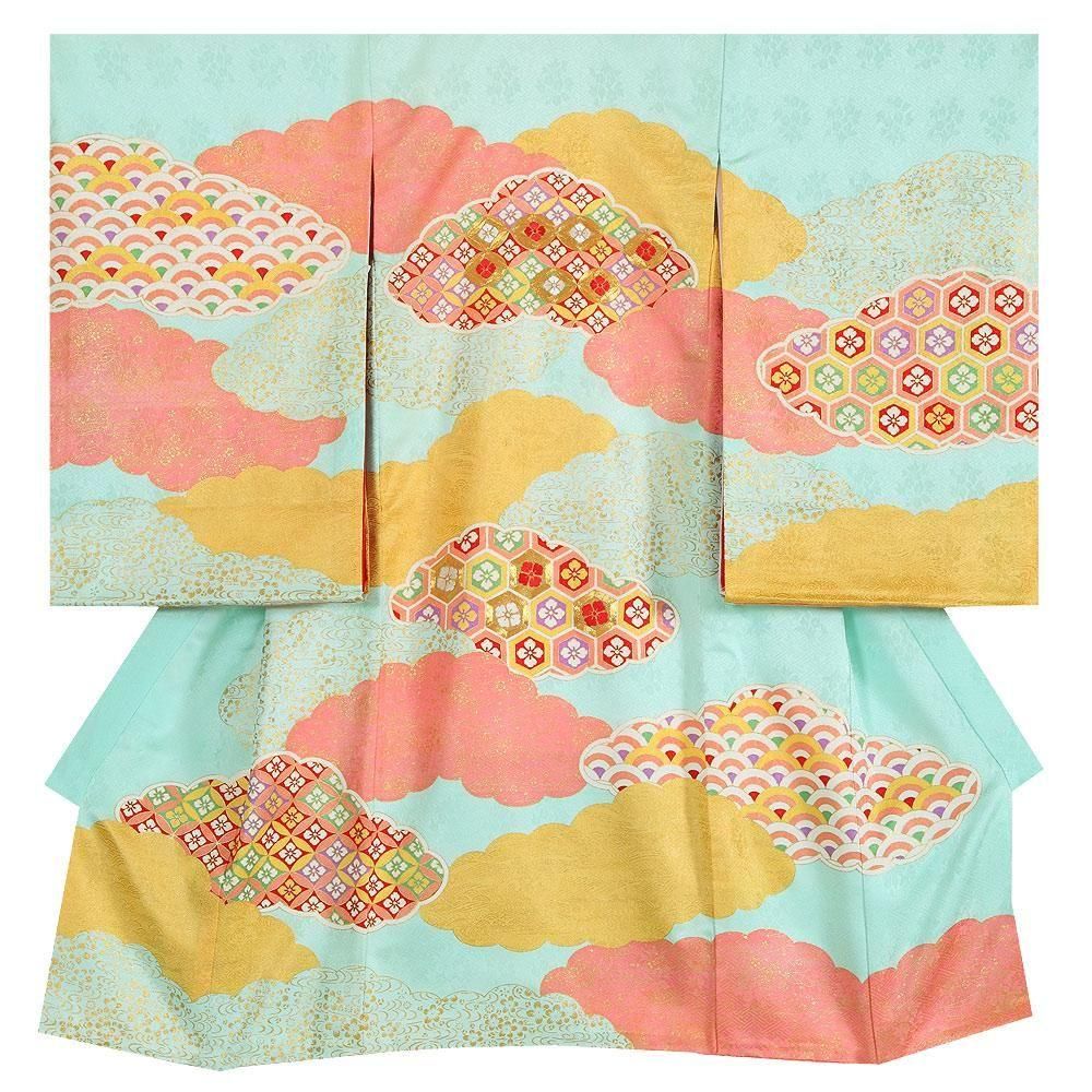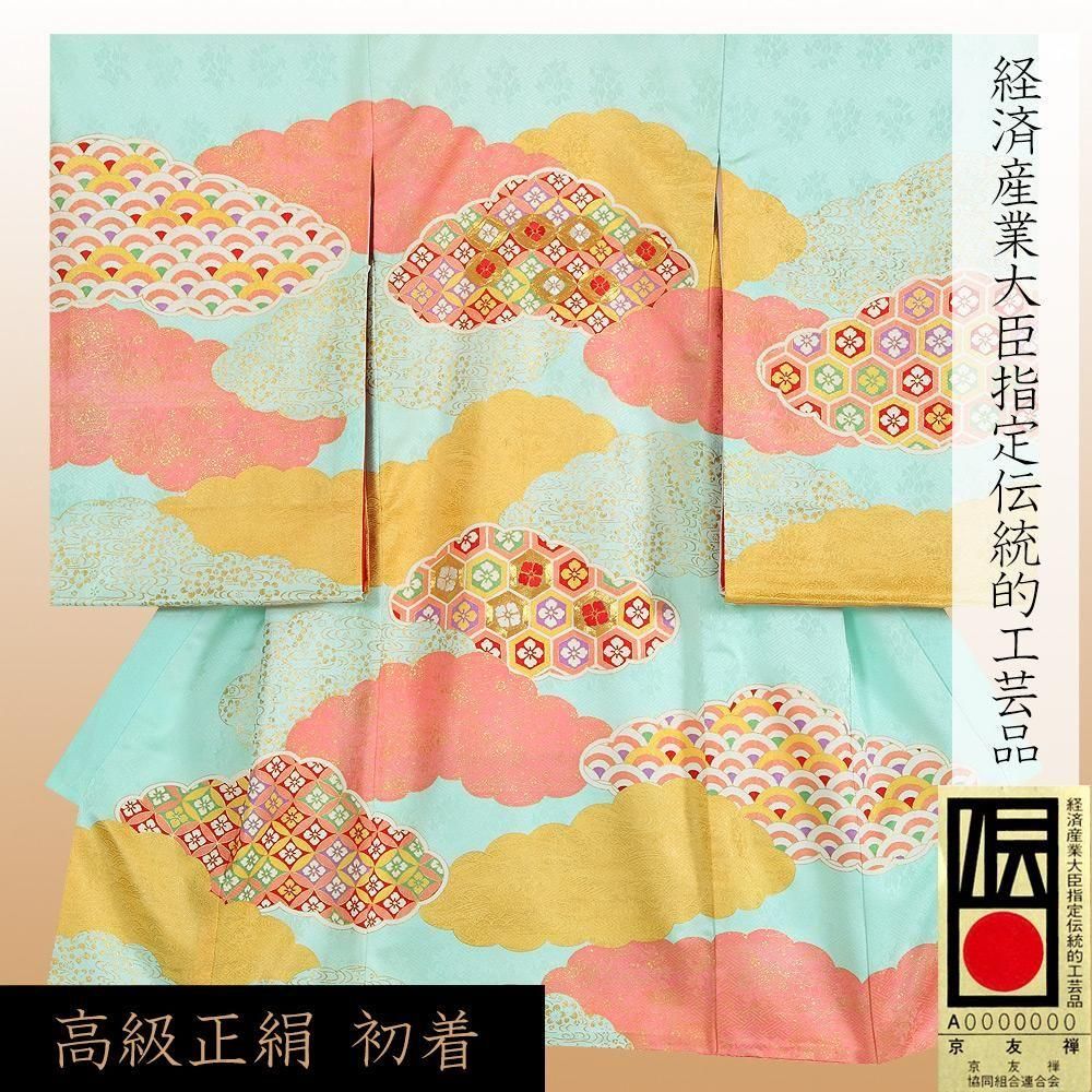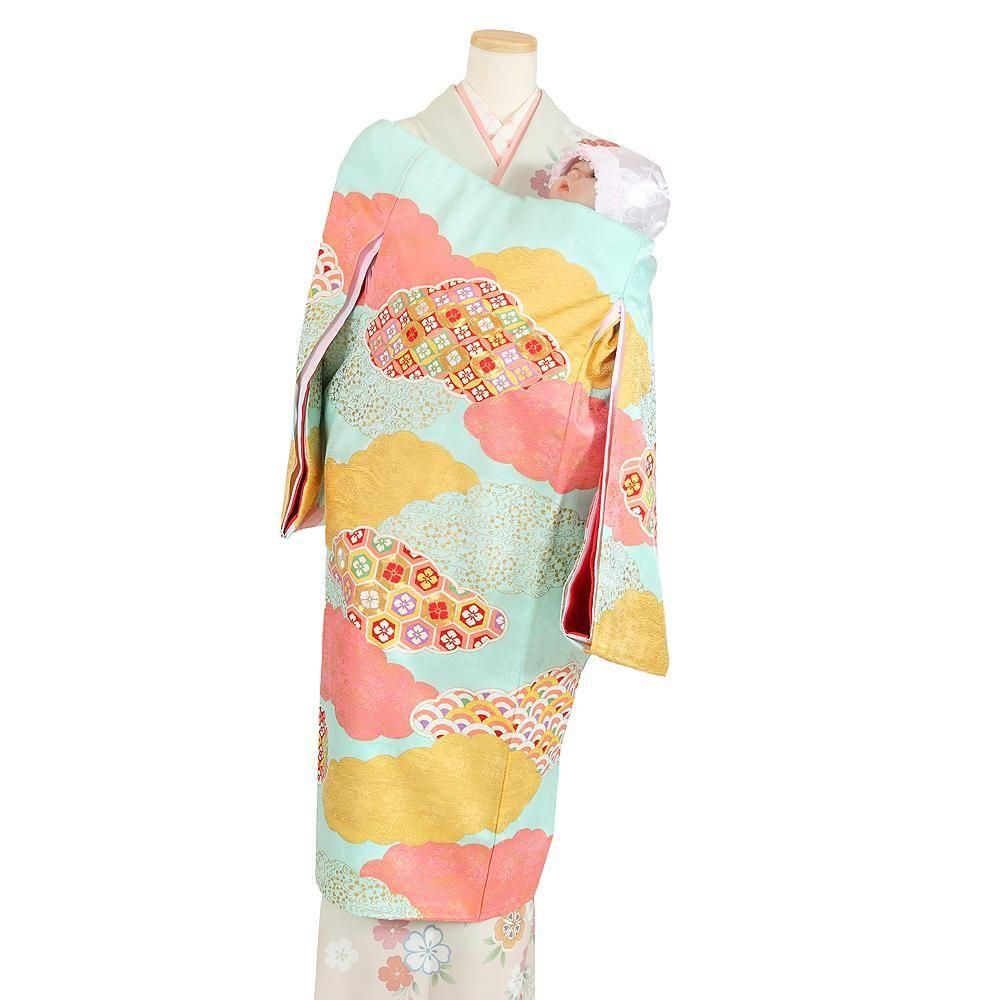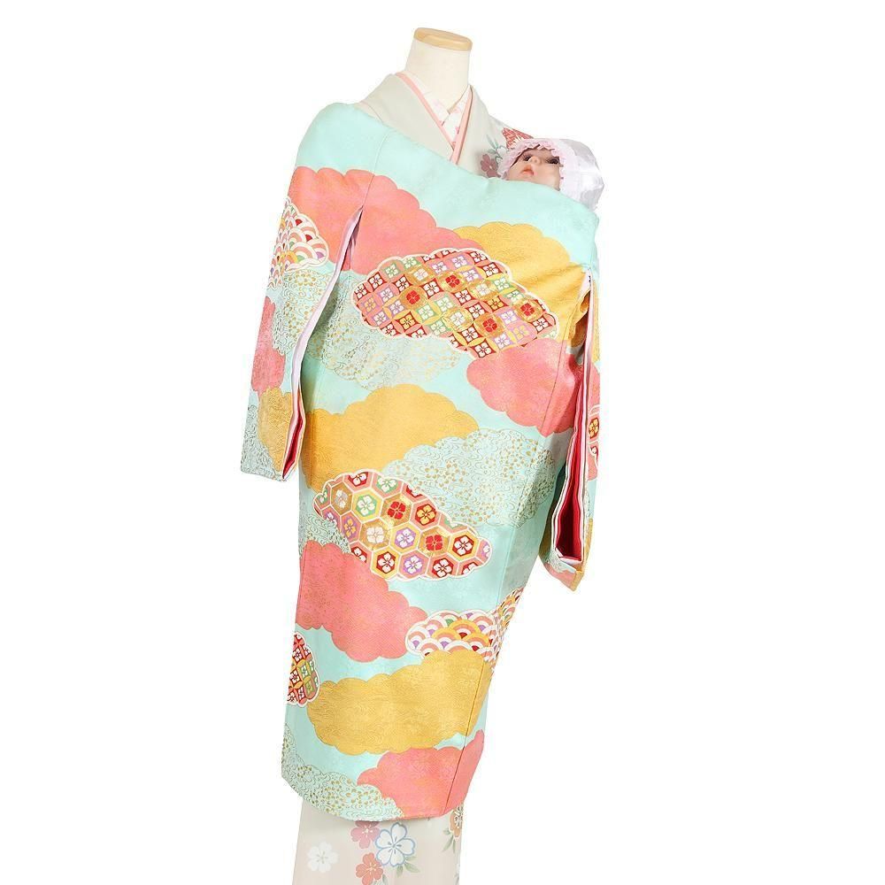 【高級初着・女児お宮参り】G246 正絹白緑 雲取り【往復送料無料】