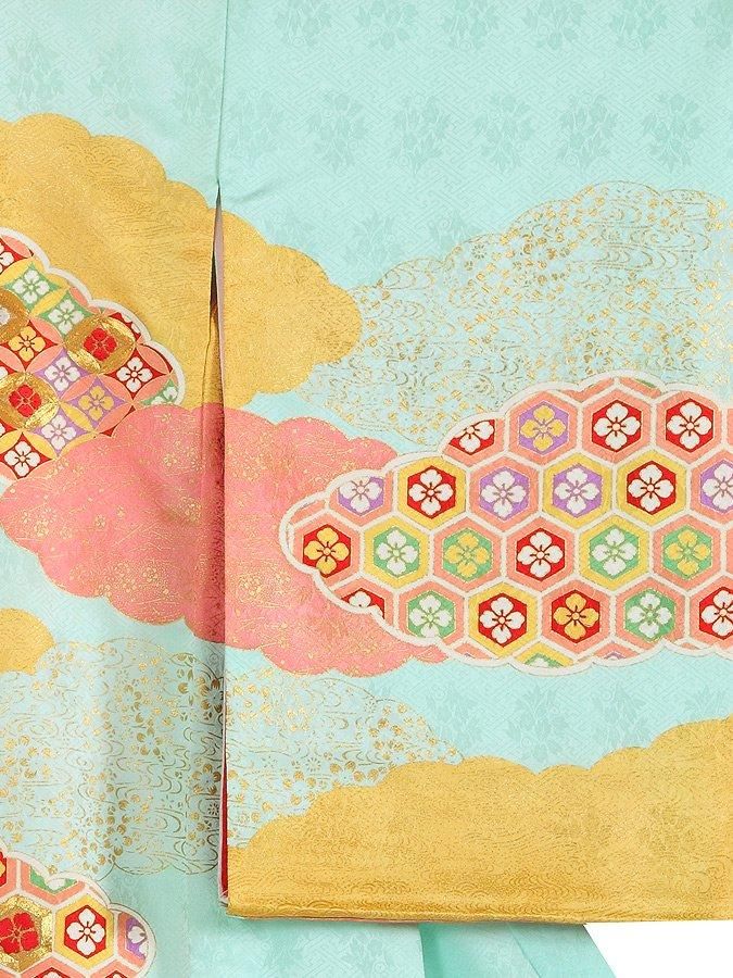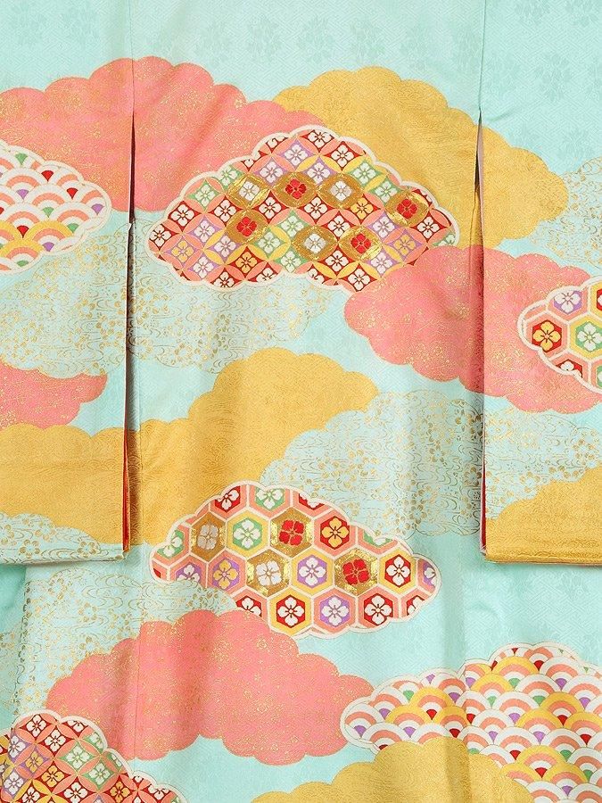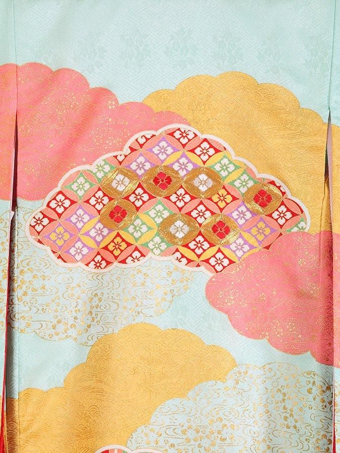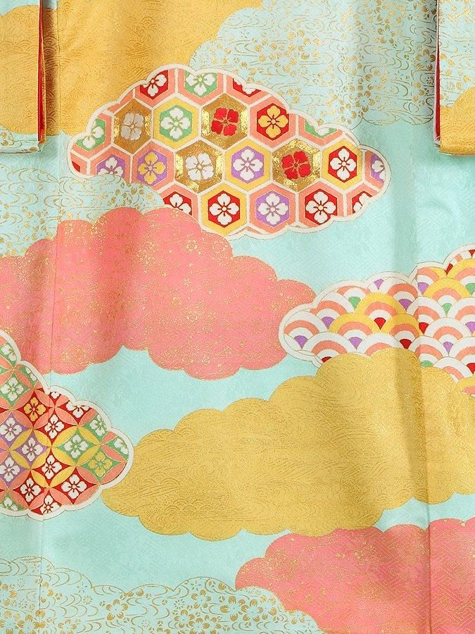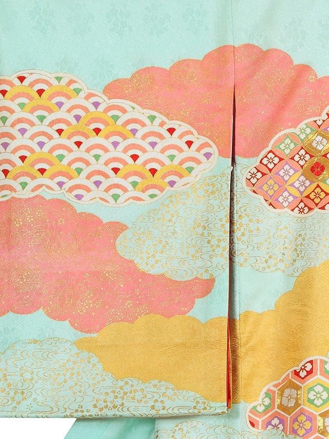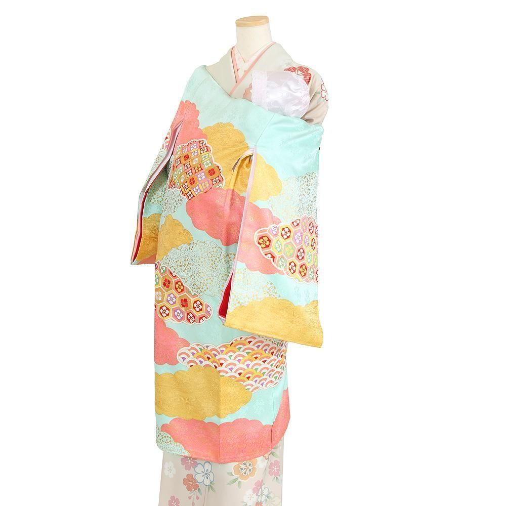 【高級初着・女児お宮参り】G246 正絹白緑 雲取り【往復送料無料】