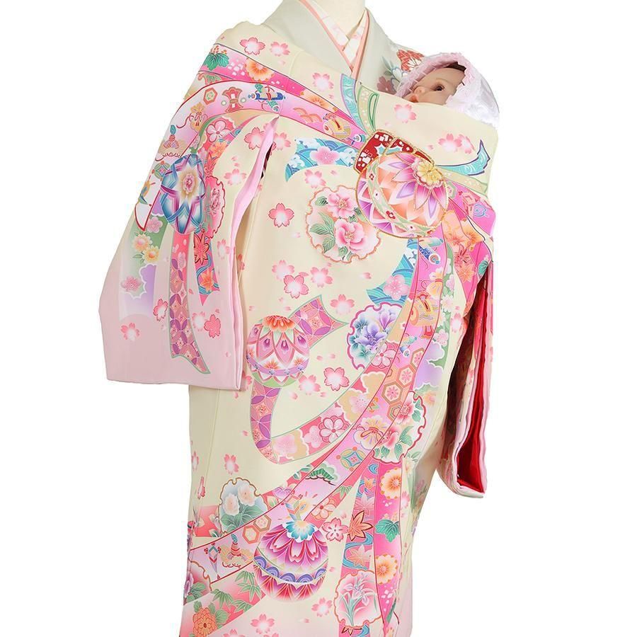 【女児お宮参りレンタル初着(産着)】G144 薄黄色地 鞠 束ね熨斗【往復送料無料】