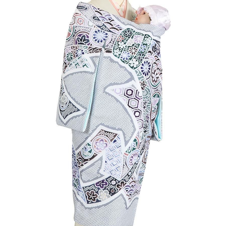 【女児お宮参りレンタル初着(産着)】G0265 グレー地 疋田 束ね熨斗【往復送料無料】