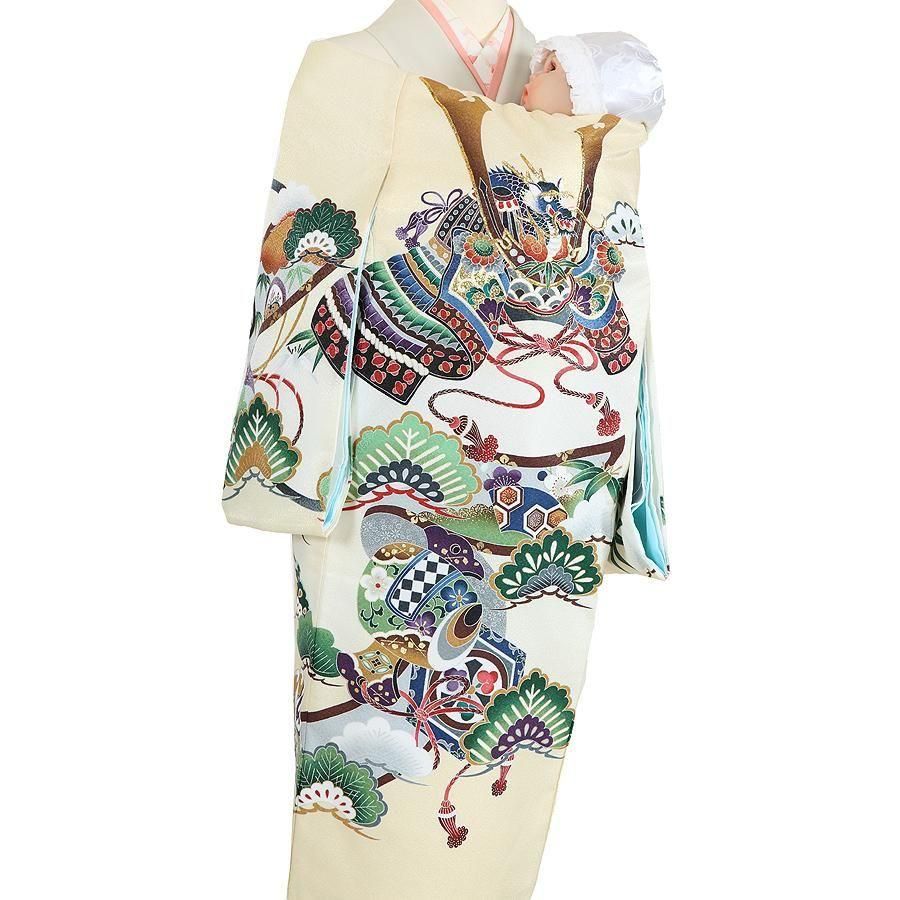 【男児お宮参りレンタル初着(産着)】B267 クリーム地 兜 松竹梅【往復送料無料】