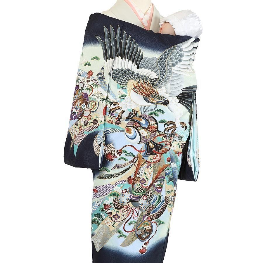 【男児お宮参りレンタル初着(産着)】B269 紺地 鷹 束ね熨斗【往復送料無料】