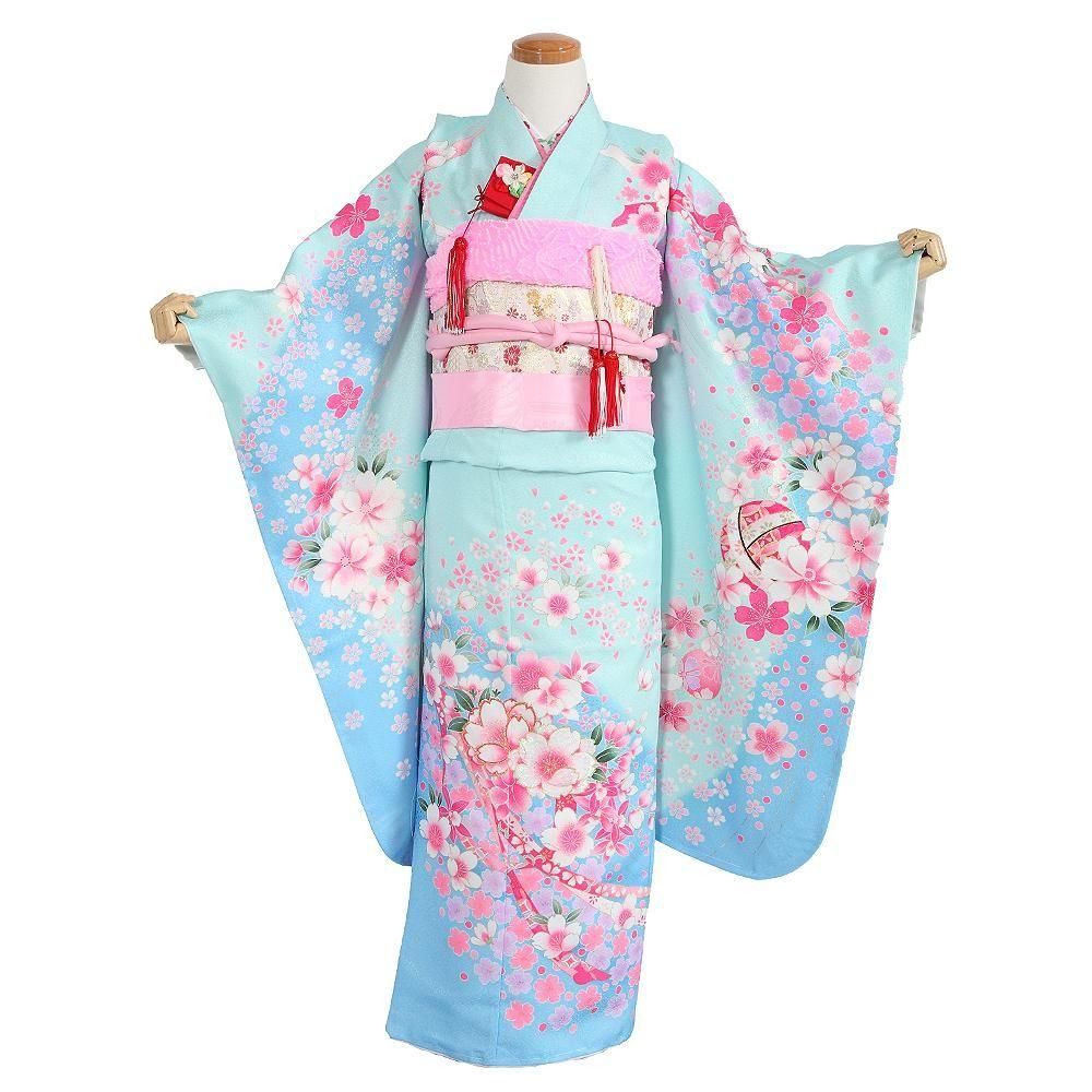 【七五三女児7歳レンタル着物】753G4-70 水色地 ピンク花【往復送料無料】