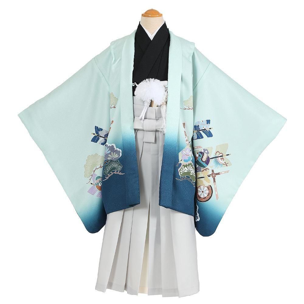 【七五三男児5歳レンタル着物】753B4-58a くすみ水色 矢羽 グレー【往復送料無料】