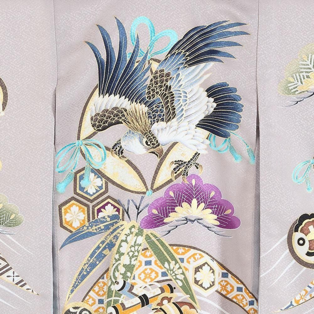 【男児お宮参りレンタル初着(産着)】B297 紫くすみグレー地 鷹 松竹梅【往復送料無料】
