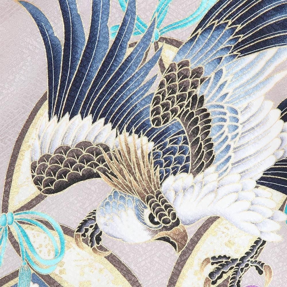 B297 紫くすみグレー地 鷹 松竹梅