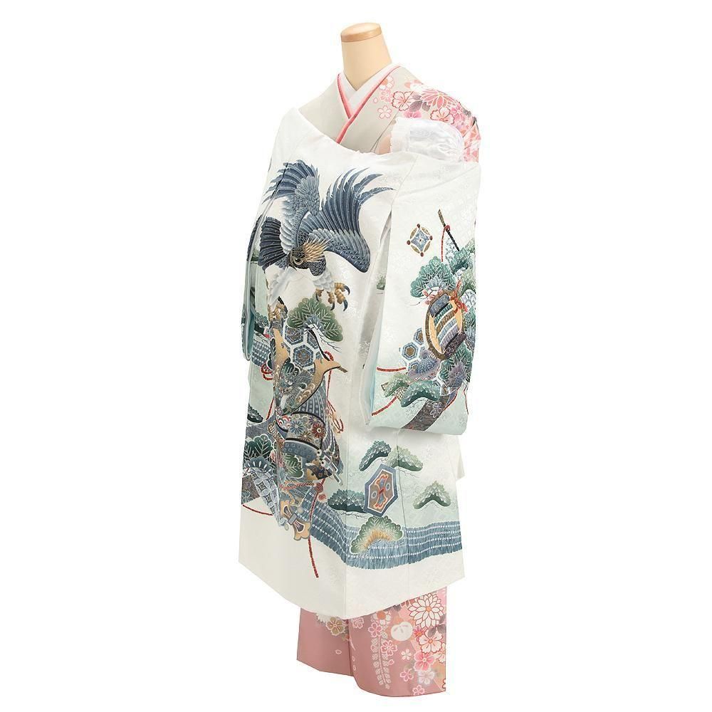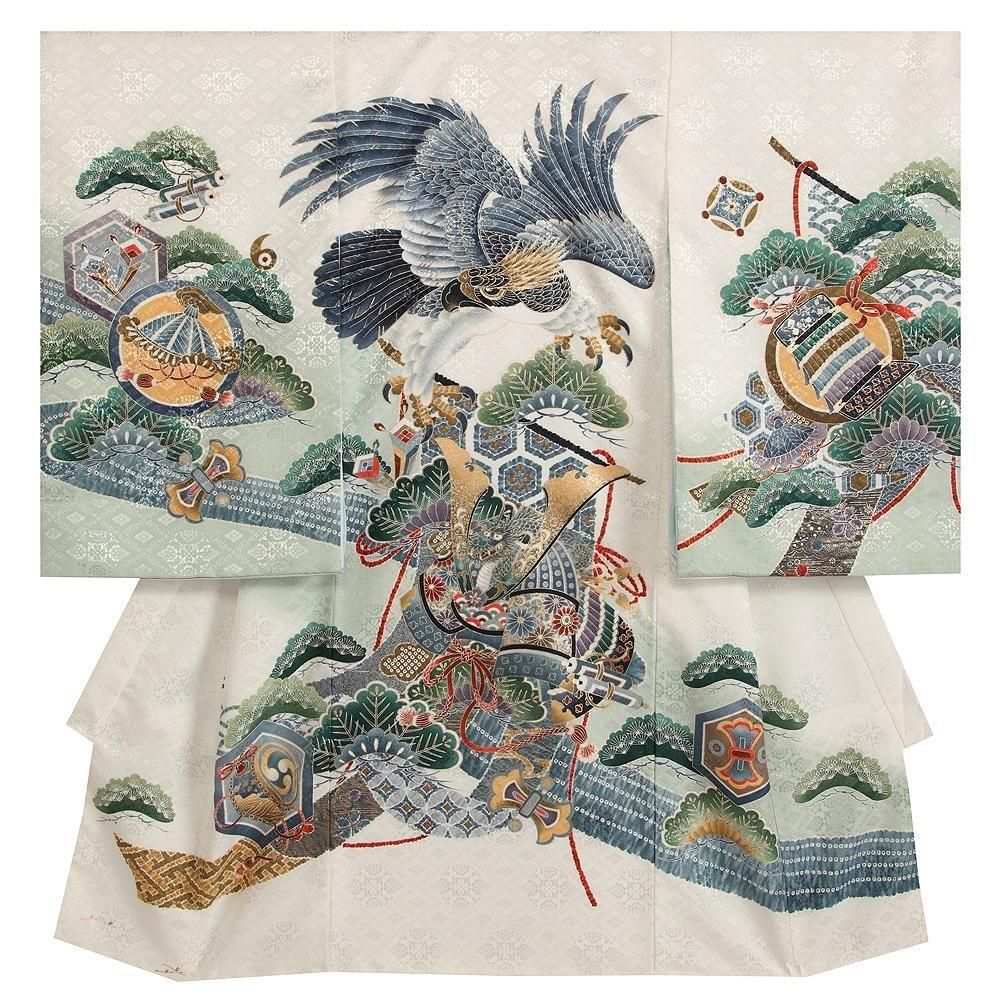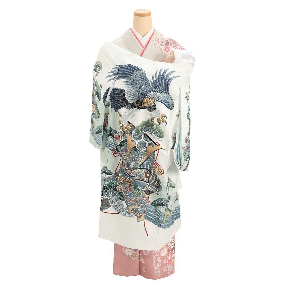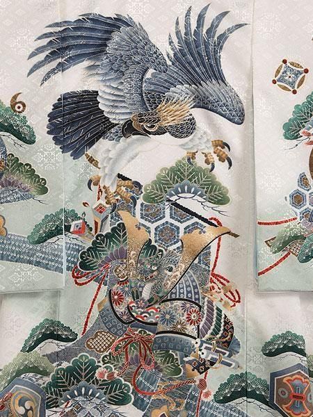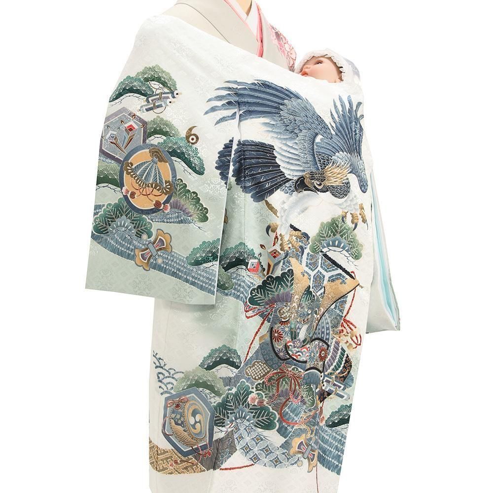 【男児お宮参りレンタル初着(産着)】B61 白地 鷹 兜【往復送料無料】