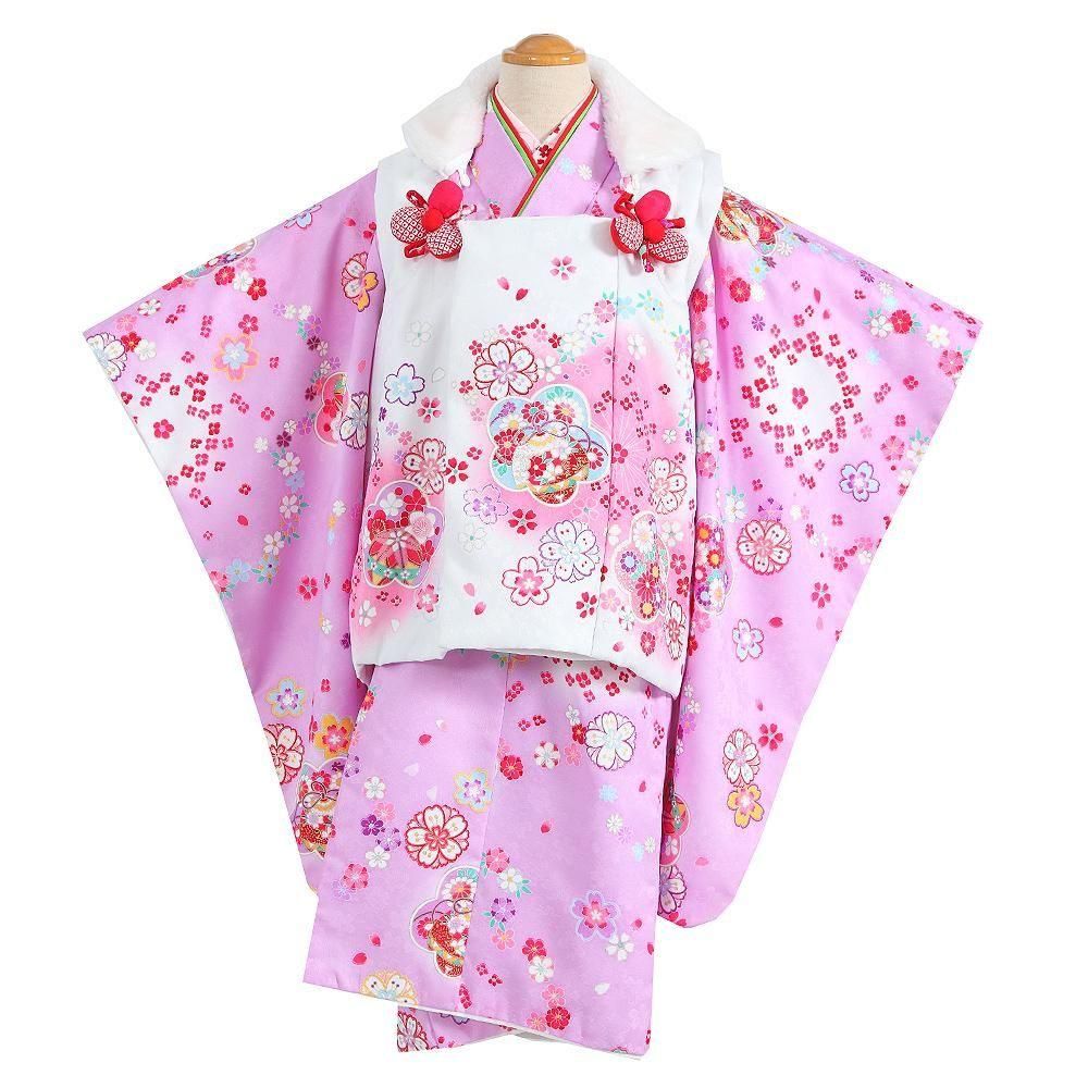 【七五三女児 3歳被布レンタルセット】753G3-34 薄紫地小花 被布白【往復送料無料】