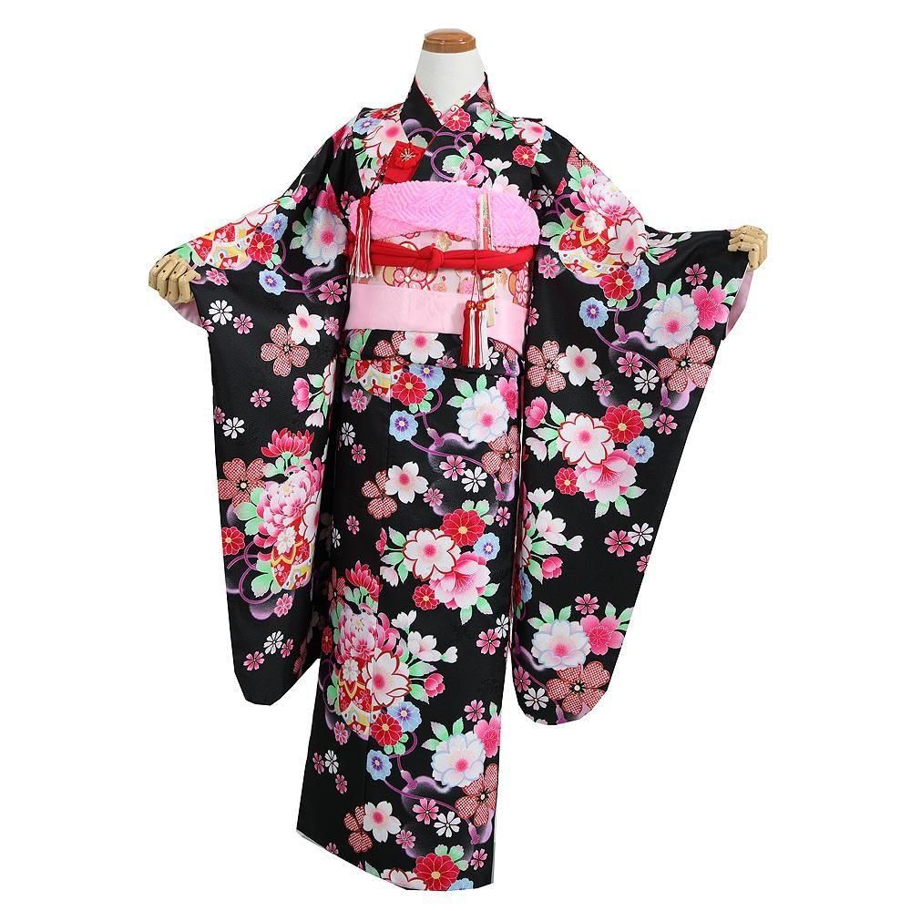 【七五三女児7歳レンタル着物】753G4-36 黒地 花 小紋【往復送料無料】