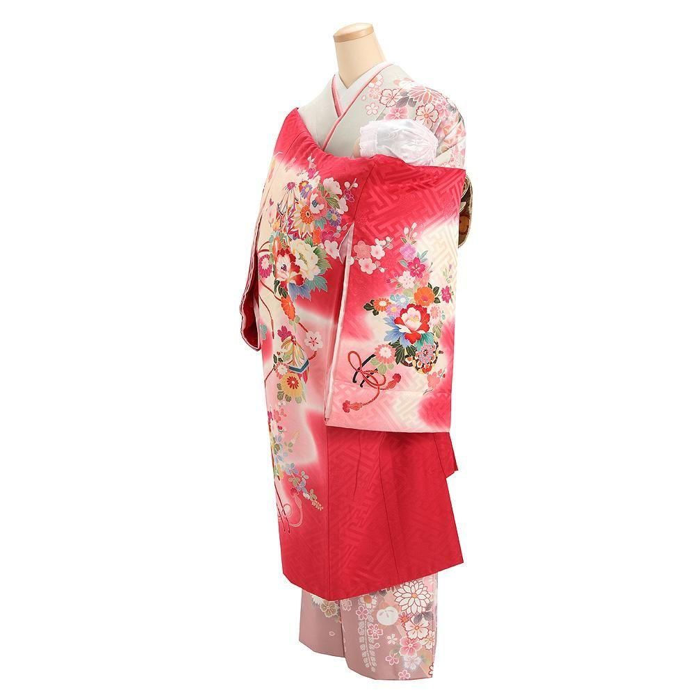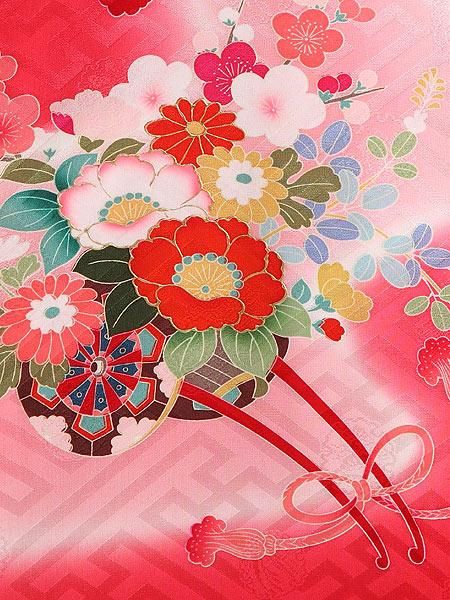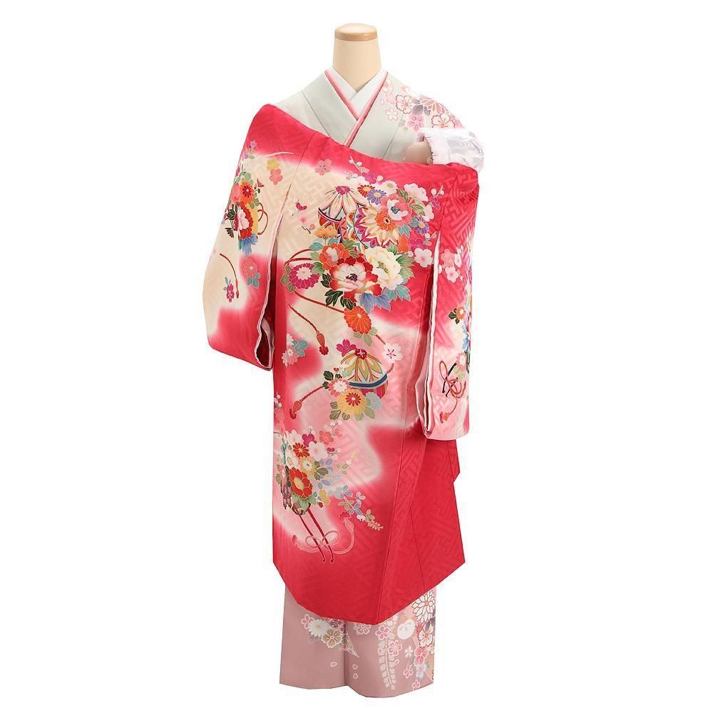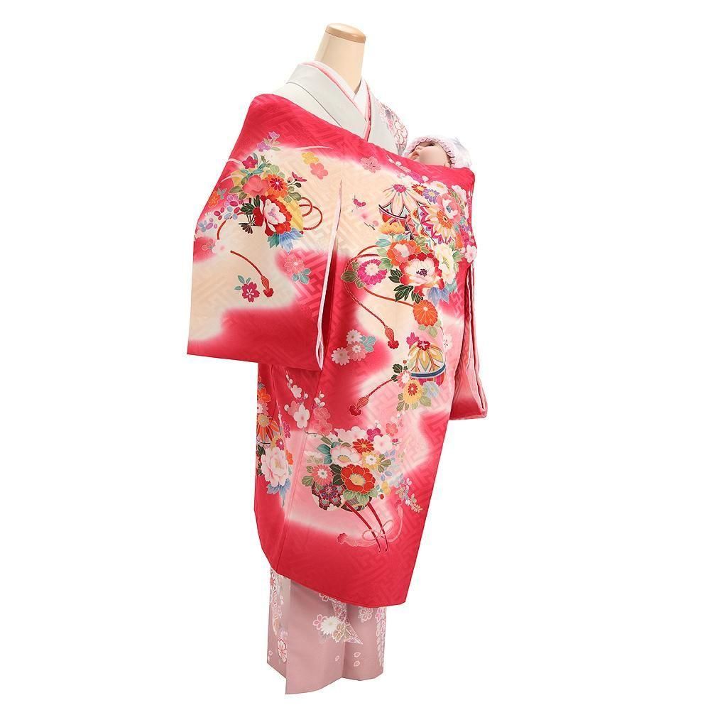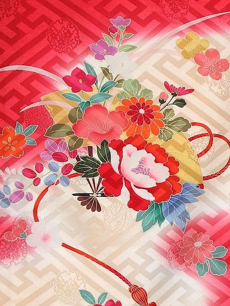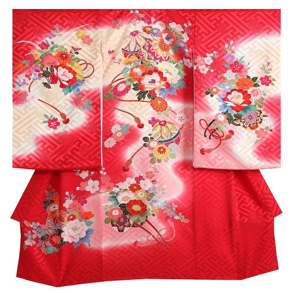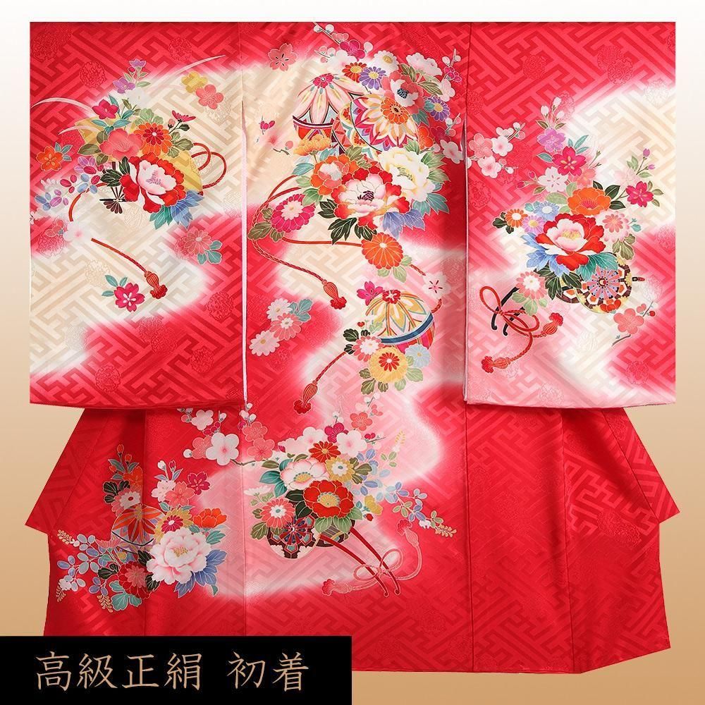 【高級初着・女児お宮参り】G204 正絹赤地 花車 紗綾形【往復送料無料】