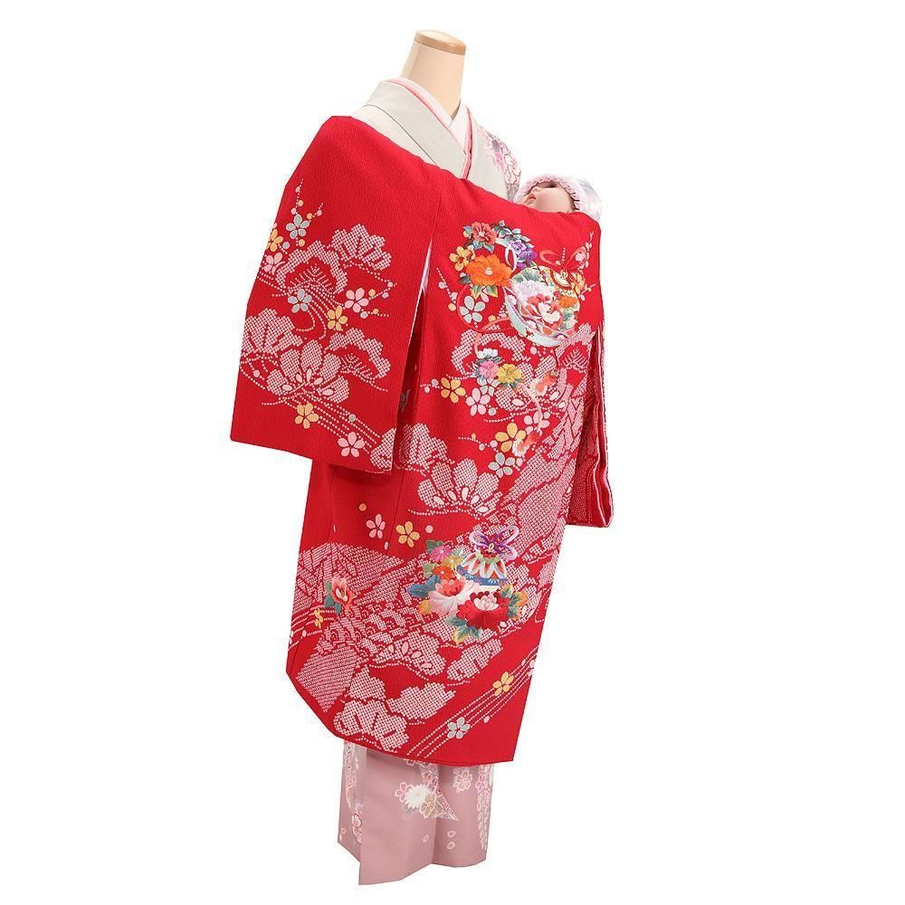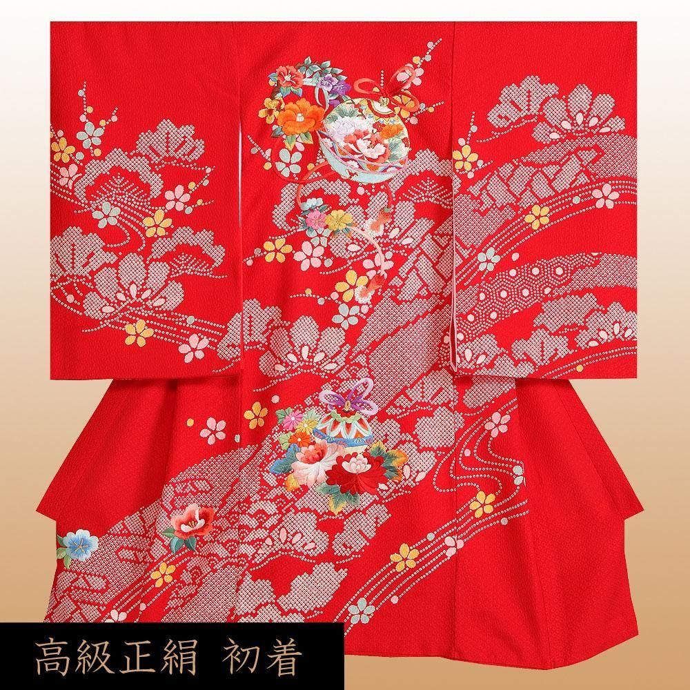 【高級初着・女児お宮参り】G205 正絹赤地 高級刺繍【往復送料無料】