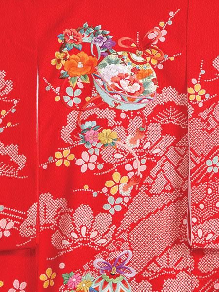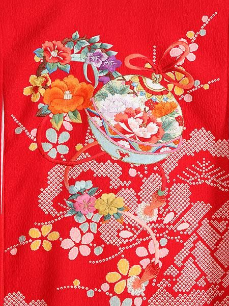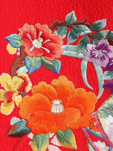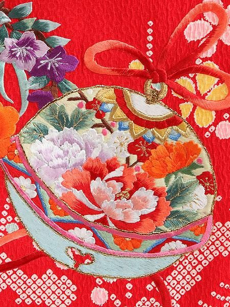 ちりめん生地に繊細で美しい高級刺繍が施された、存在感のある高級産着です。高級刺繍の色彩が華やかな一品です。