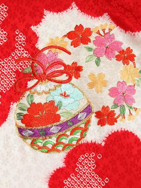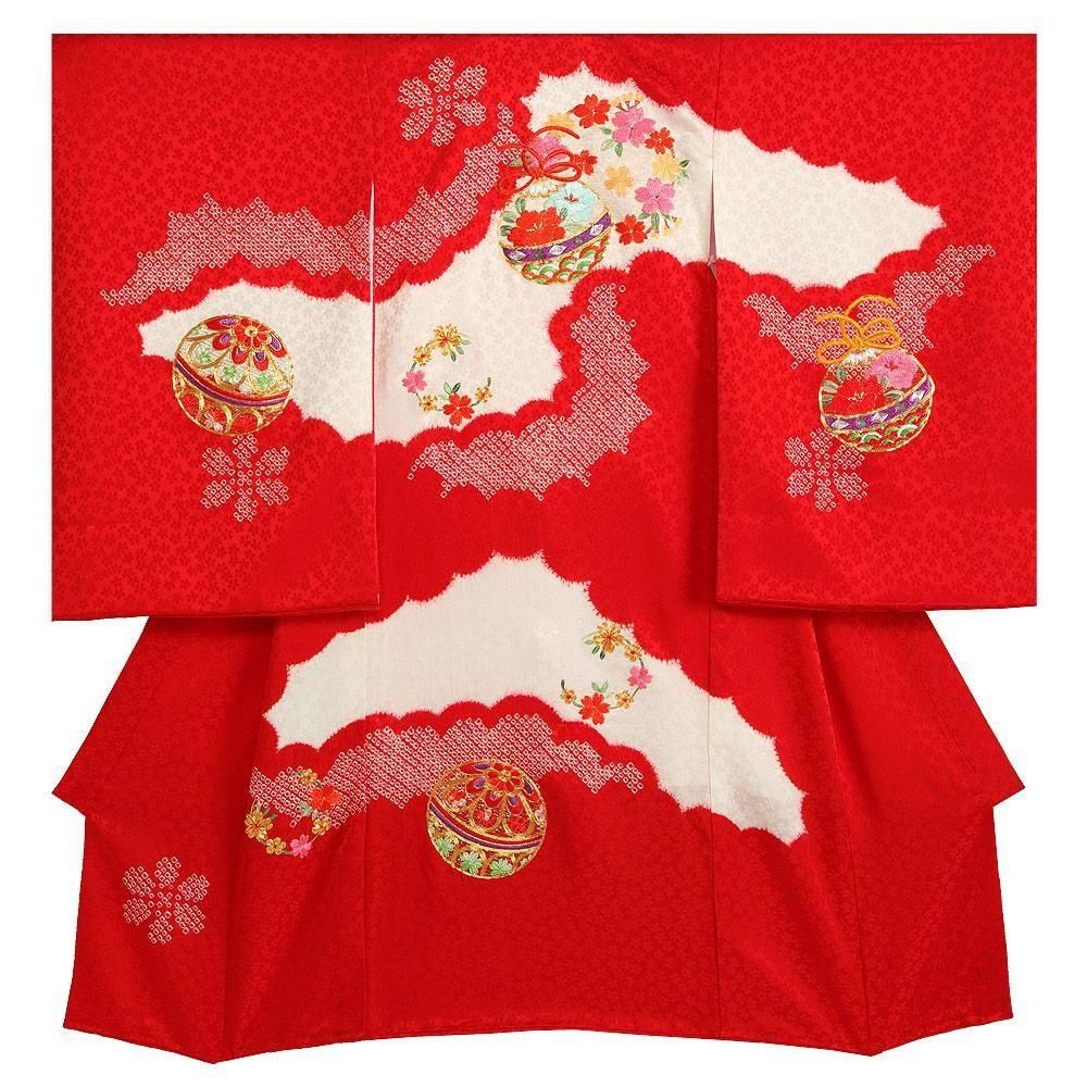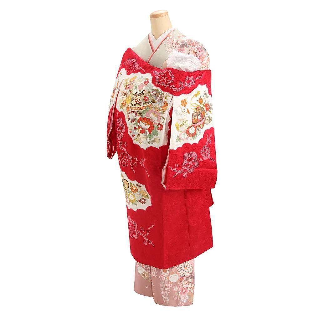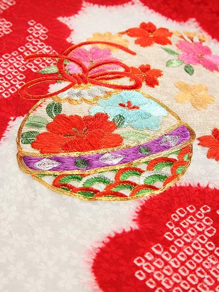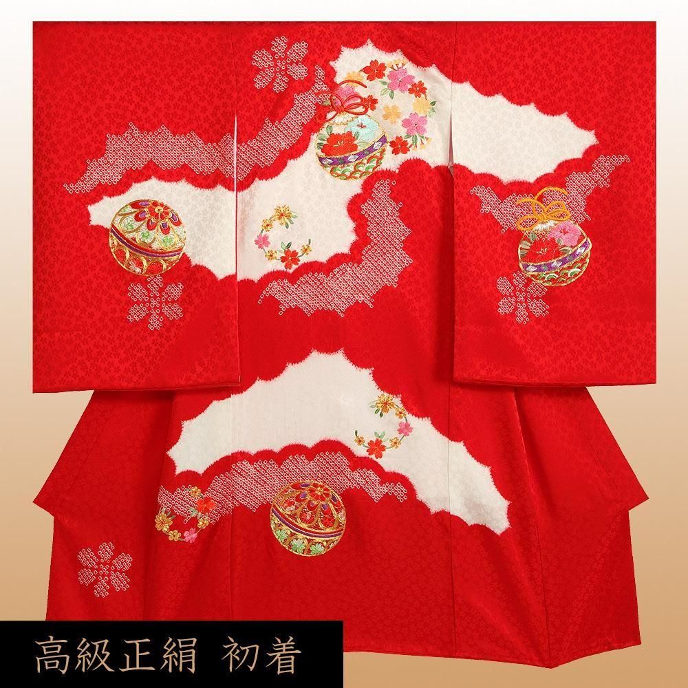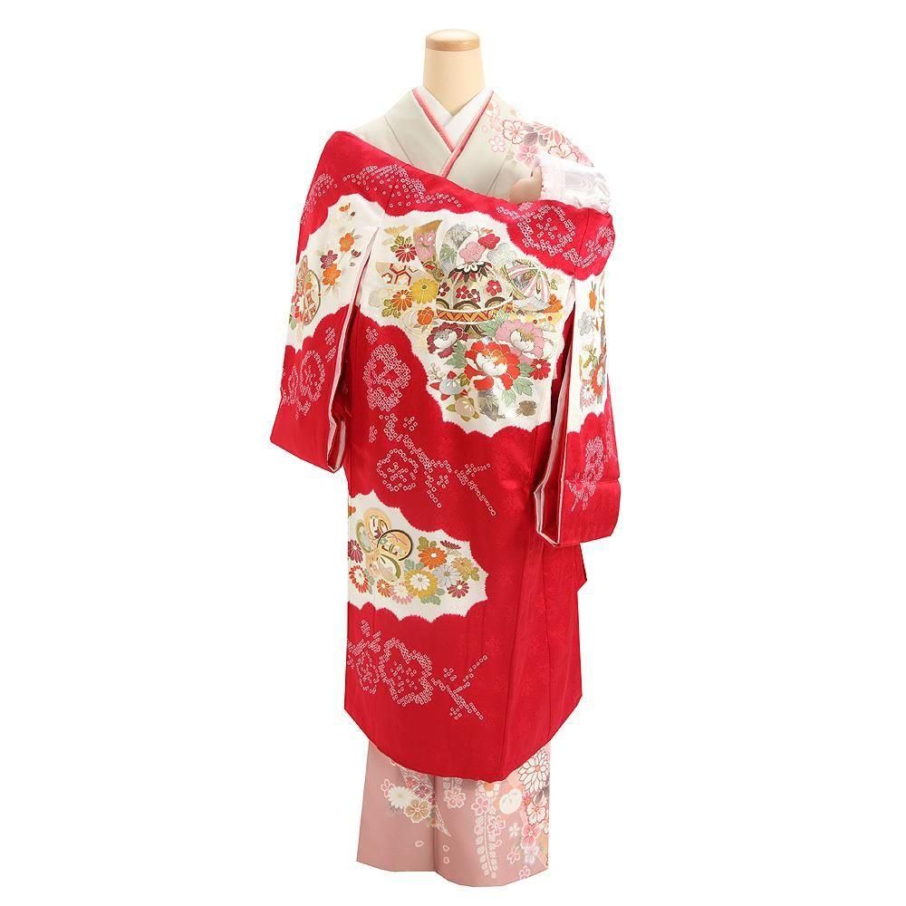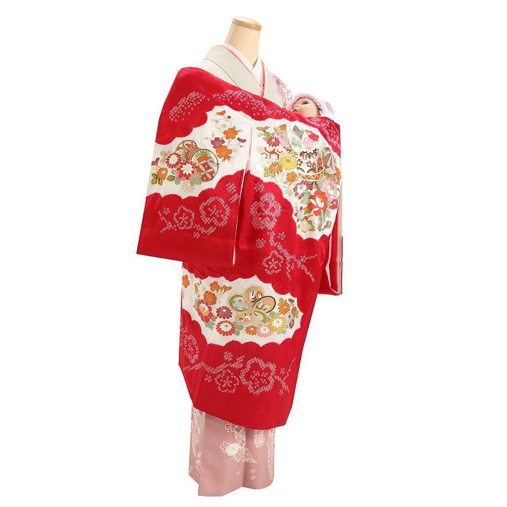 【高級初着・女児お宮参り】G207 正絹赤地 本絞り染 刺繍鈴【往復送料無料】